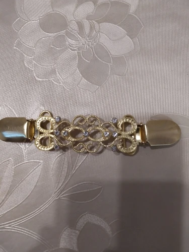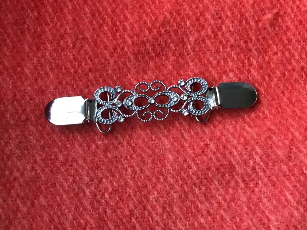 This shawl clip works fine, the clips are sturdy and lock in well. Sadly, over half of the glass "gems" were glued in off center, which makes it look really cheap. It's not the kind of costume jewelry I'd wear out of the house. However, if you're looking for a cute shawl clip to wear around the house, this is a good choice.