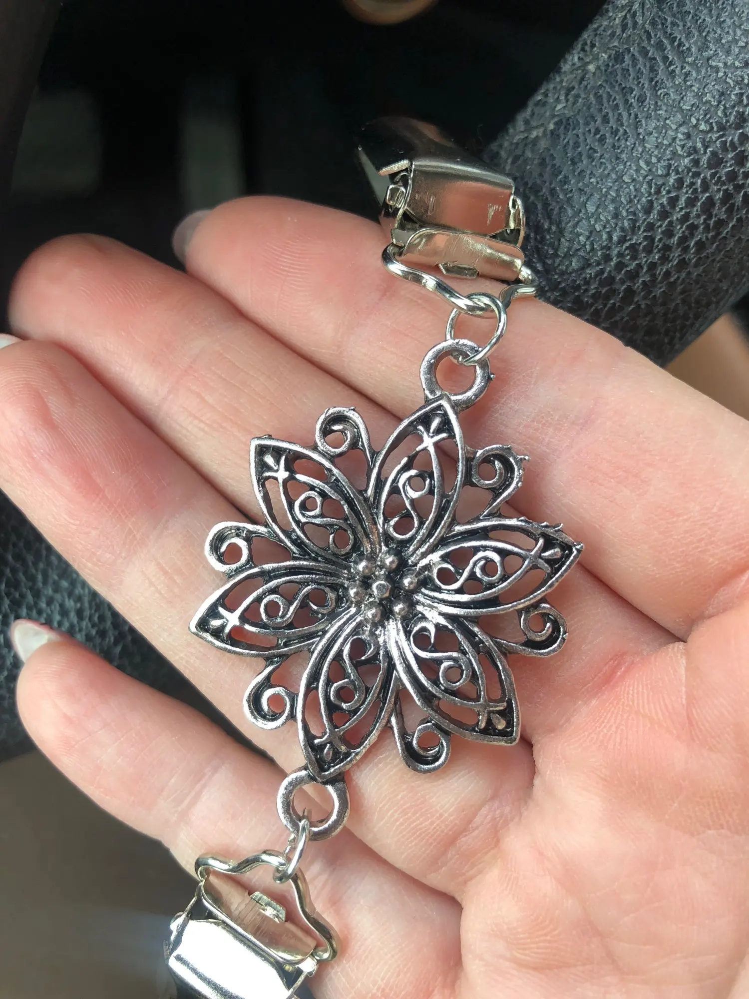 Удобный и симпатичный зажим для кардигана. Пришел в целости и сохранности, хорошо упакован.