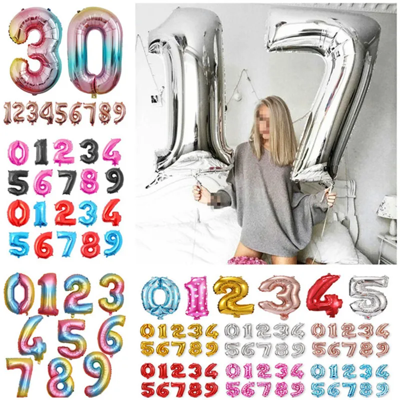 32 дюймов Большой цвета: золотистый, серебристый розовое золото номер воздушный шар из фольги гелиевые шары воздушные шары цифры для День рождения украшения для взрослых и детей