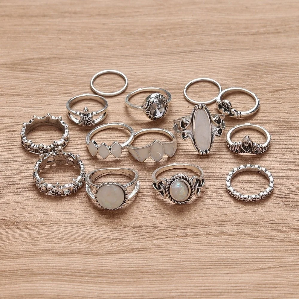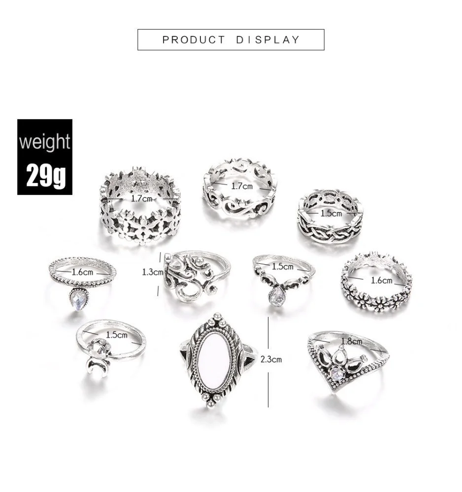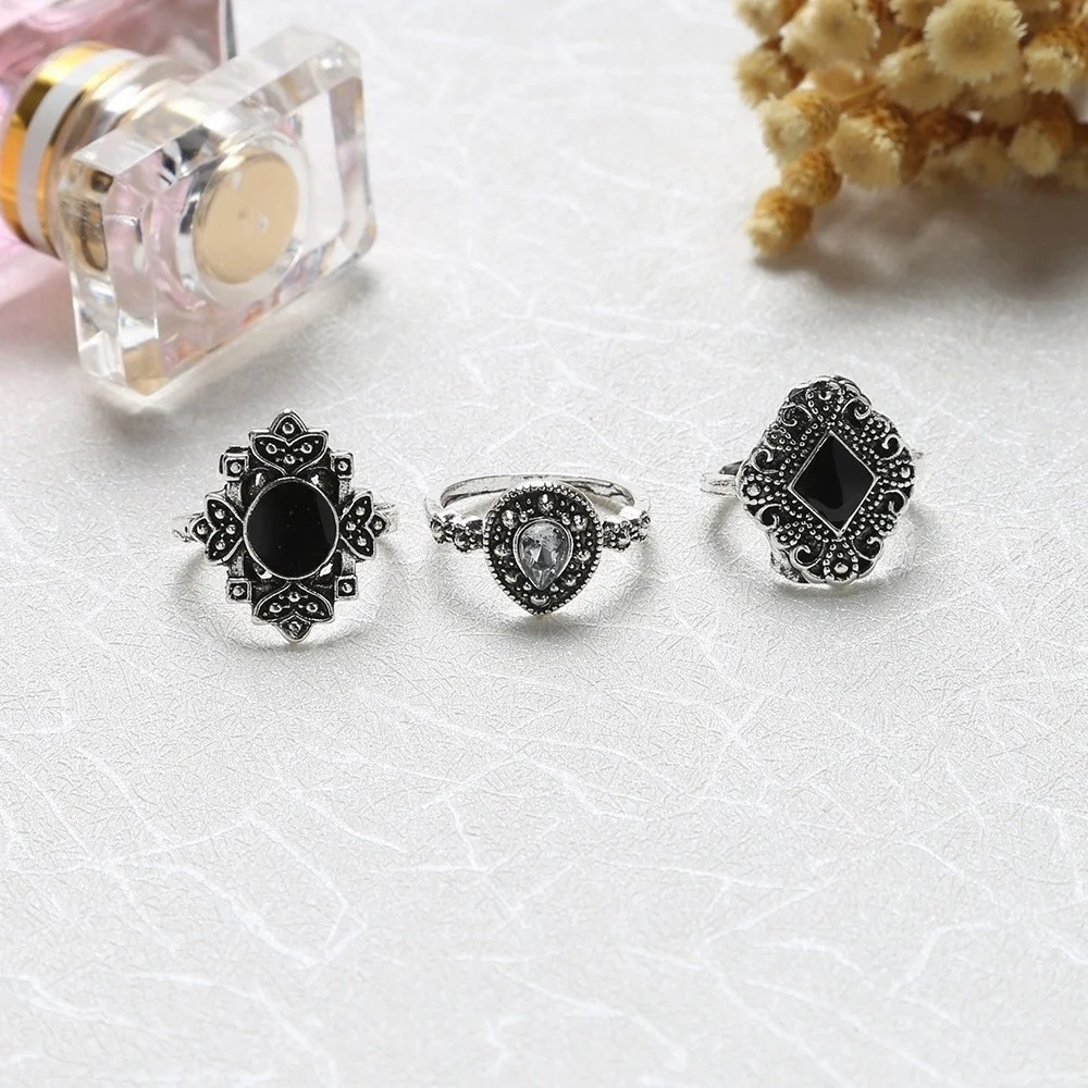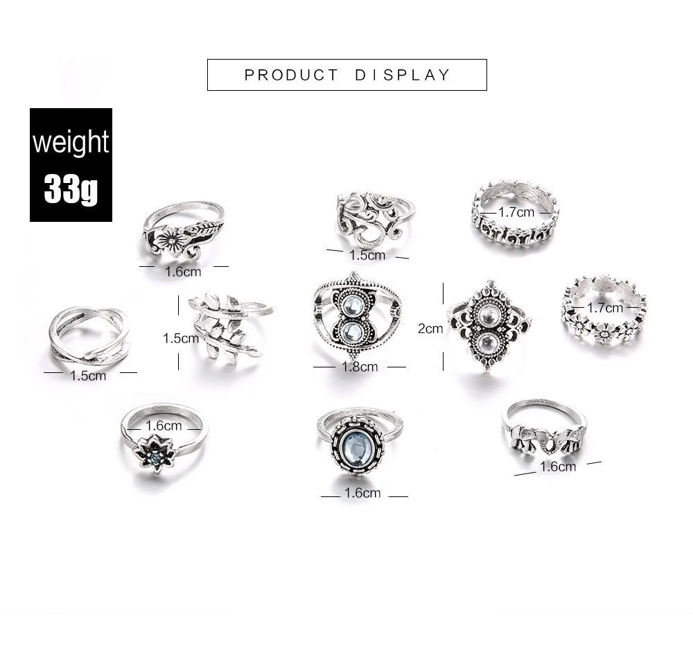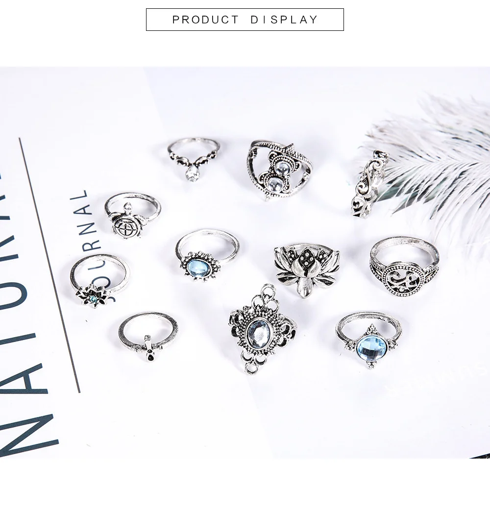 Винтажные женские кольца Bague Femme геометрической формы, в стиле бохо, набор колец с кристаллами на суставах в богемном стиле на пальцы рук, ювелирное изделие серебряного цвета