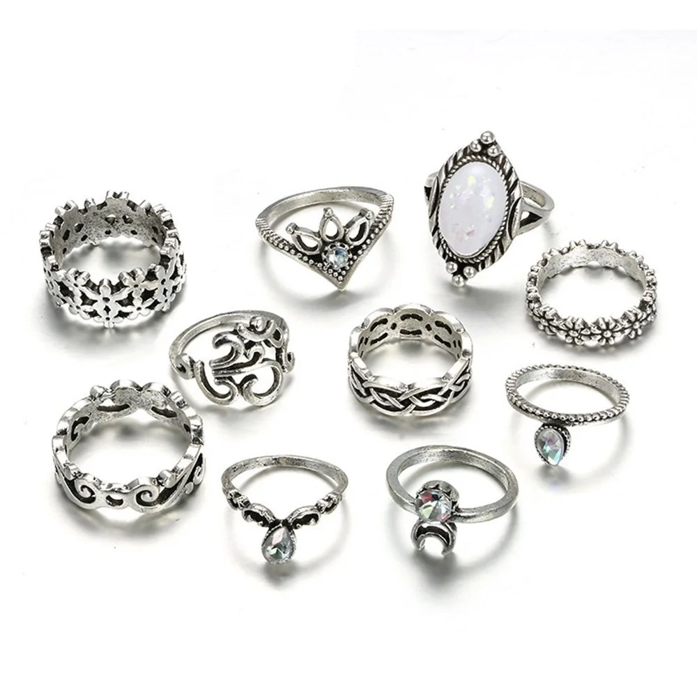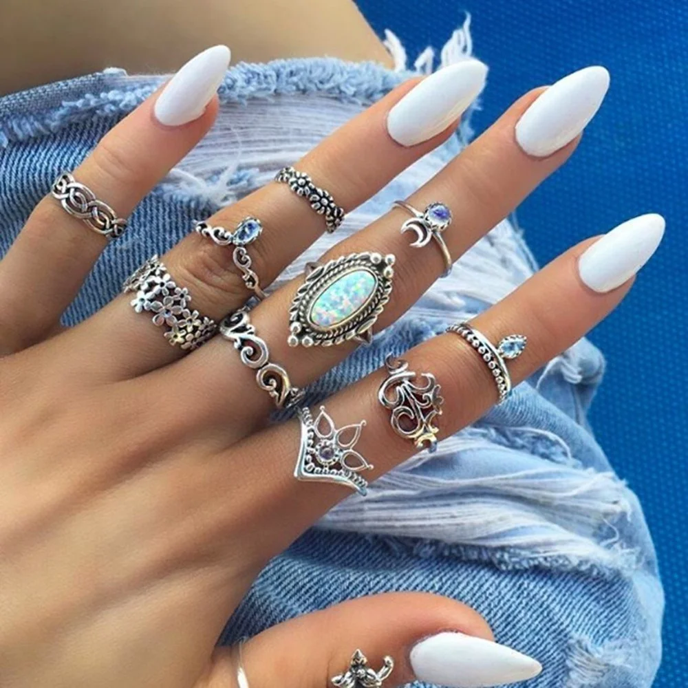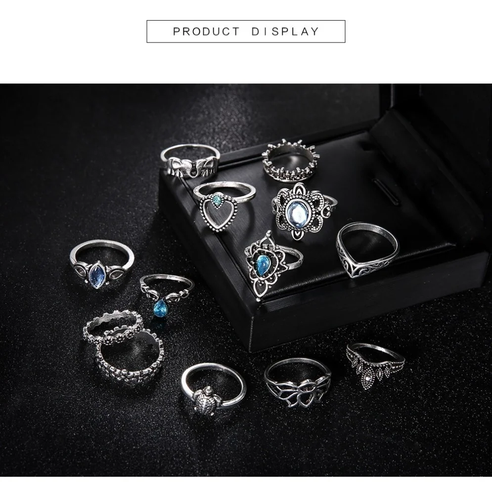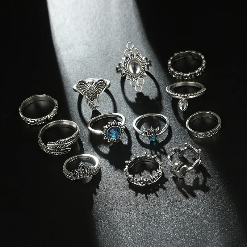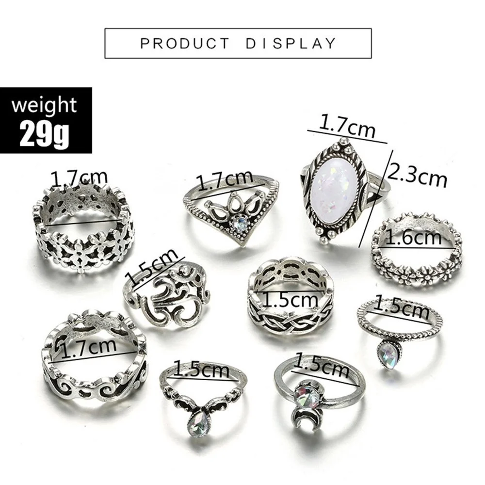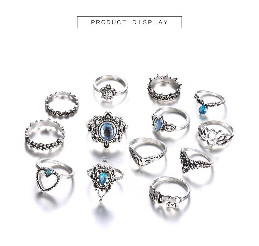 Винтажные женские кольца Bague Femme геометрической формы, в стиле бохо, набор колец с кристаллами на суставах в богемном стиле на пальцы рук, ювелирное изделие серебряного цвета