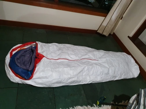 Приятный ультралегкий комбинезон. Может быть немного выше, чтобы вместить коврик и спальный мешок. Это немного туго и ограничительно для обоих.