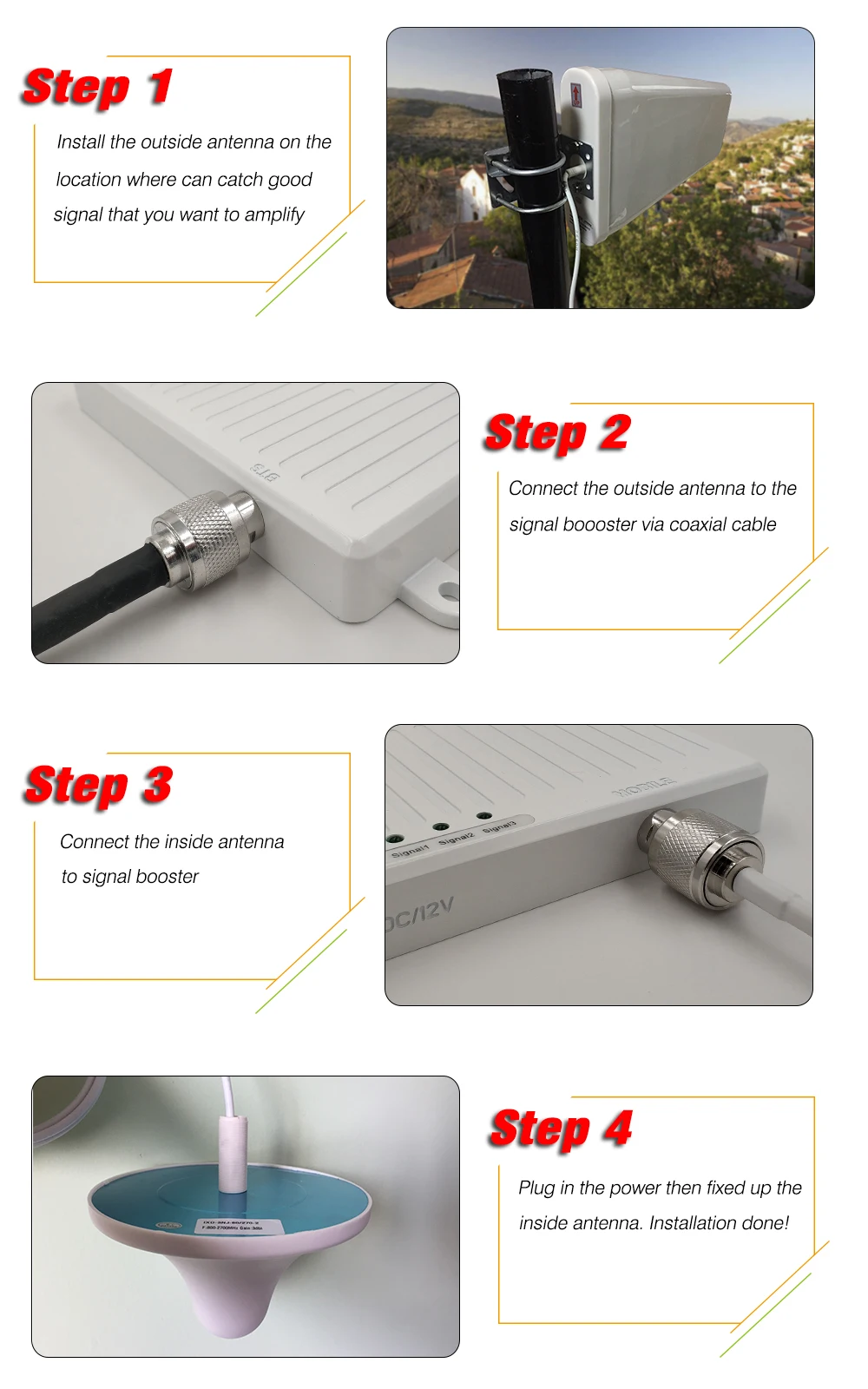 Шаг 1 Начните с того, чтобы поднять телефон на крышу или в другое место снаружи, чтобы найти наиболее сильный сигнал.Шаг 2 временно Установите наружную (внешнюю) антенну в этом месте. Возможно, вам потребуется отрегулировать и перемещать антенну позже.Шаг 3. Вставьте коаксиальный кабель в здание в удобное положение (чердак и т. д.), где вы также можете получить стандартную мощность для ретранслятора сигнала.Шаг 4 поместите ретранслятор сигнала в это место и Подключите коаксиальный кабель к наружной стороне ретранслятора сигнала и наружной антенны.Шаг 5 установите вашу внутреннюю (внутреннюю) антенну в продуктивном месте. Вам может потребоваться отрегулировать или перемещать антенну позже. Больше заметок на внутренних антеннах и узорах здесь.Шаг 6 Подключите коаксиальный кабель между внутренней антенной и выходным портом ретранслятора сигнала.Шаг 7 включите систему и проверьте сигнал внутри здания. При необходимости Настройте систему, перемещая или указывая наружные и внутренние антенны, пока они не получат максимально возможный сигнал.Шаг 8 Защитите все антенны и кабели, надежно закрепите Репитер сигнала и очистите установку.Конечно, есть еще несколько вещей, которые нужно рассмотреть, но в общем, это основная процедура. Для получения дополнительной информации, пожалуйста, свяжитесь с нами.