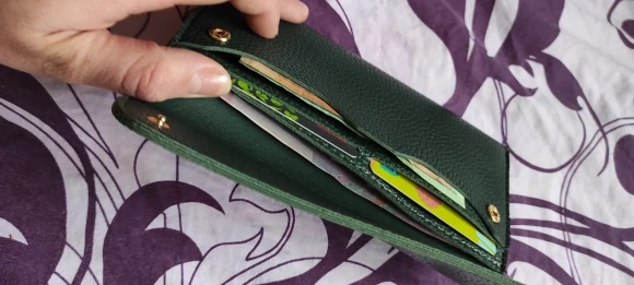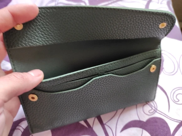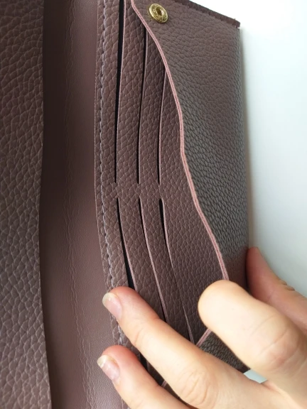 Кошелёк неудобный, очень жёсткий, торчат нитки.
