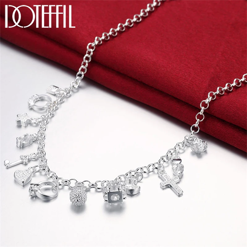 Цепочка женская из серебра 925 пробы с кулоном в виде сердца, Луны, звезды, Креста