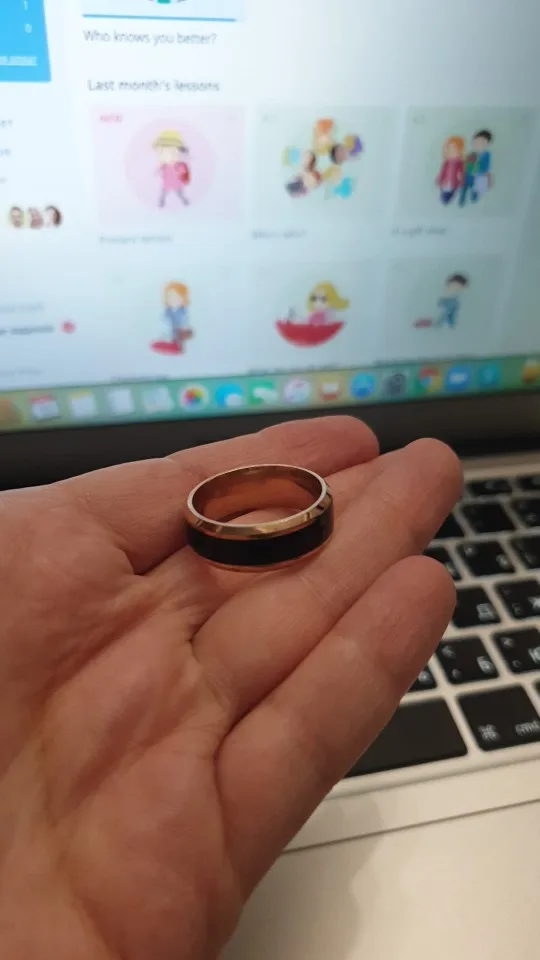 Пришёл заказ спустя два месяца. Вещь прикольная, но в принципе бесполезная, так как руки постоянно меняют температуру, постоянно ими что-то делаешь и соответственно кольцо постоянно показывает разную температуру.