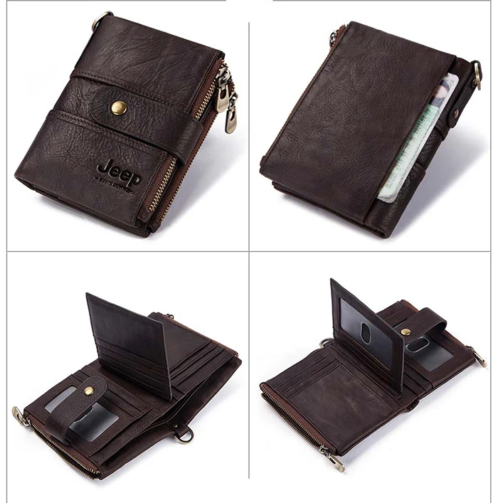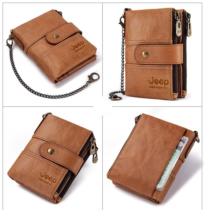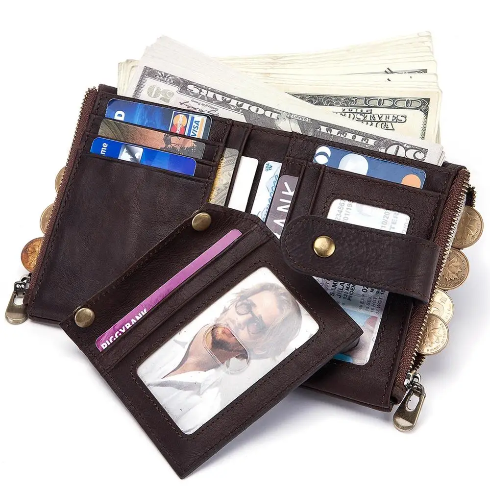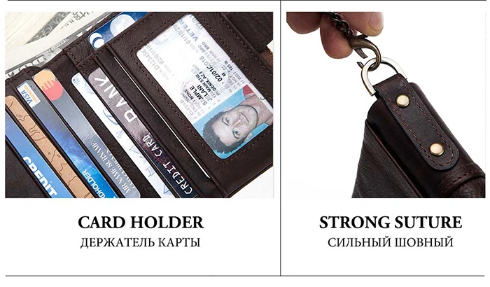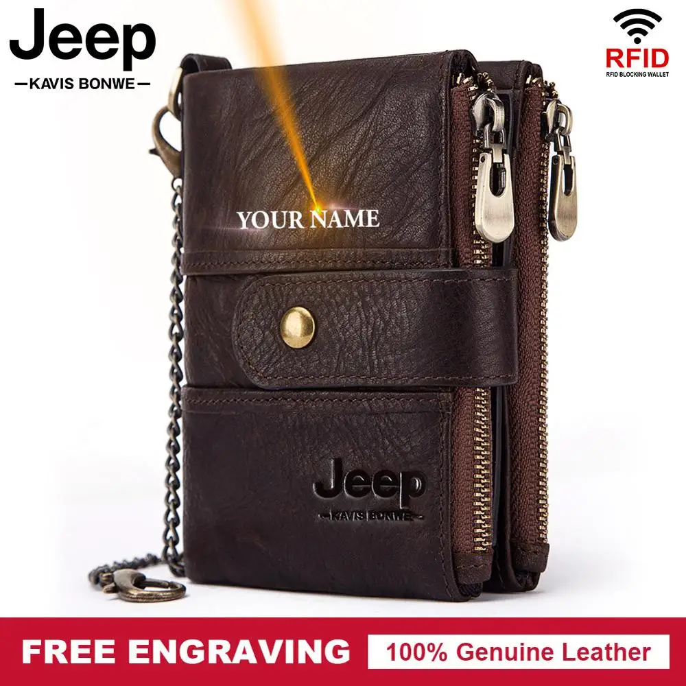 Мужской кошелек из натуральной кожи, винтажный кошелек с Rfid-защитой, с отделением для монет, мужской кошелек на цепочке, 100%