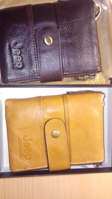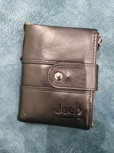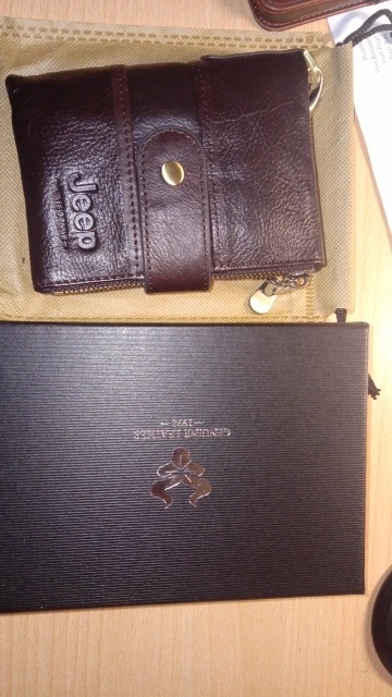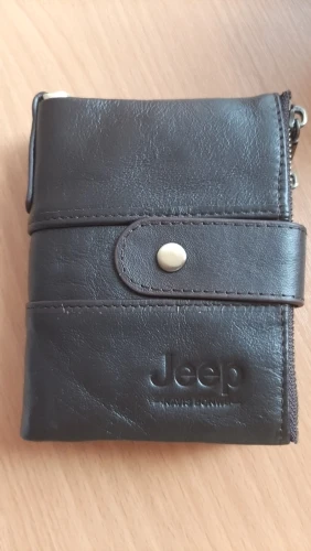 Начнем с кошелька...запах новой вещи, запах кожи. Кошелек приятный на ощупь, мягкий, но не тряпка. Все прошито отлично. Молнии металлические ...переживала что будут царапать пальцы когда монеты или карты буду доставать - нет , не царапают - вообще не чувствуются. В один из отделов монеты, в другой карты, которые редко используются - у меня там 10 карт. Кнопка и молния не облезла. Подклад в боковом кармане и внутри кошелька не шуршит. То что внутри кошелька на кнопочках я сняла, так как кошелек стал объемистый. Удобный кошелек. Я распределила так: карман на молнии - карты, который закрепляется, второй - мелочь, не открывая кошелек достать нужную сумму. Внутри наличка и карты которые регулярно использую. Надпись Jeep присутствует. Продавец предложил нанести надпись, но я не успела, так что если хотите надписать, пишите сразу. Продавец сам первый !!!!! идет на контакт. Сроки доставки прошли, написал что продлевает срок доставки. Я довольна и товаром и сервисом.