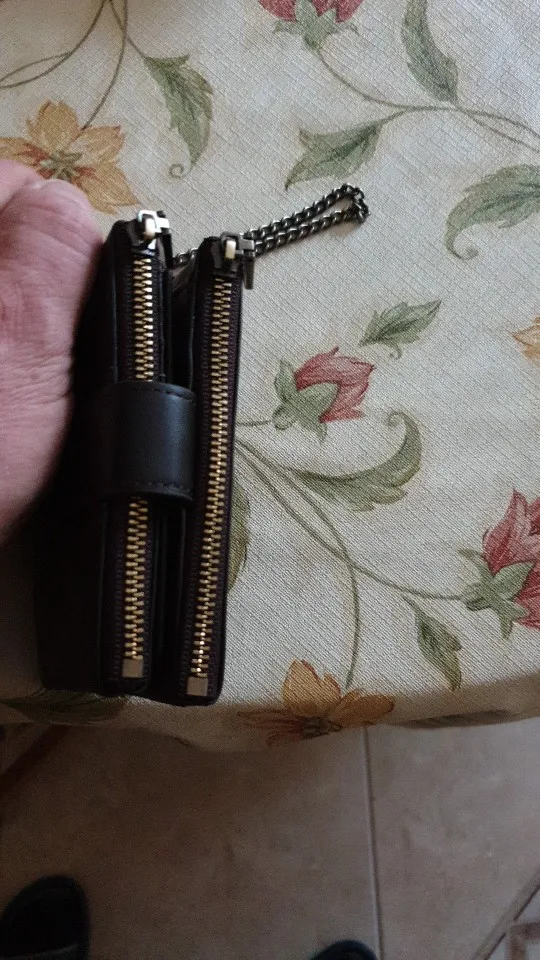 Очень симпатичный кошелек.Удобно носить в кармане,размер подобран идеально в отличие от партмоне которое в карман не поместится,цепочка прикольная,можно застегнуть к креплению ремня на поясе.Качество на высоте,все очень функционально,только забыл заказать лазерную подпись,поэтому закажу второй кошелек может быть другого цвета.Магазин рекомендую,буду заказывать еще.