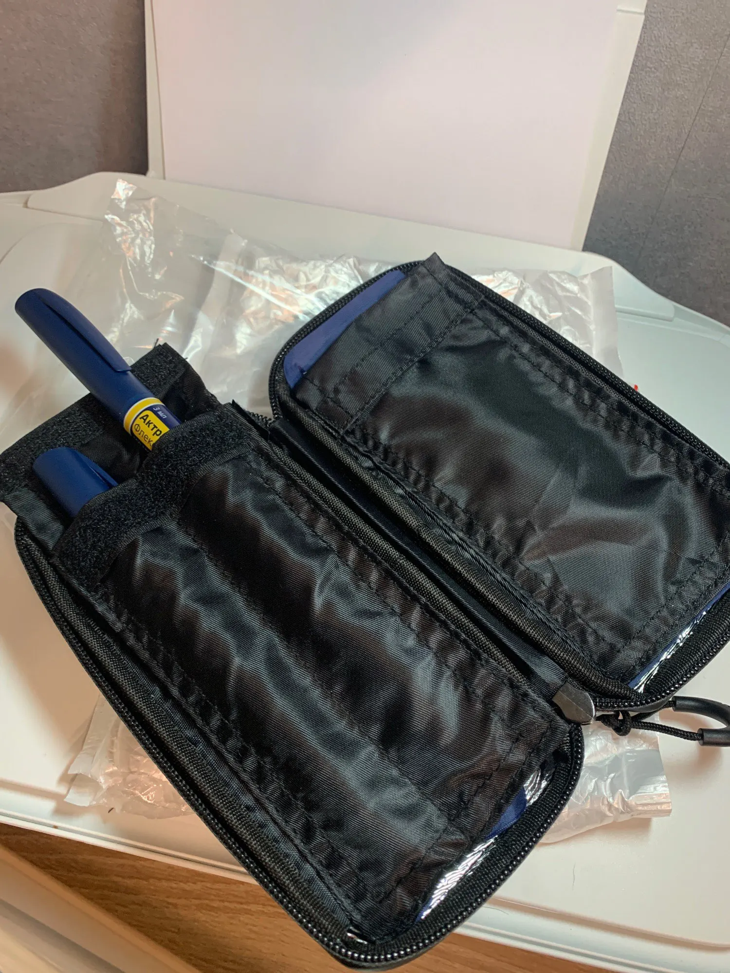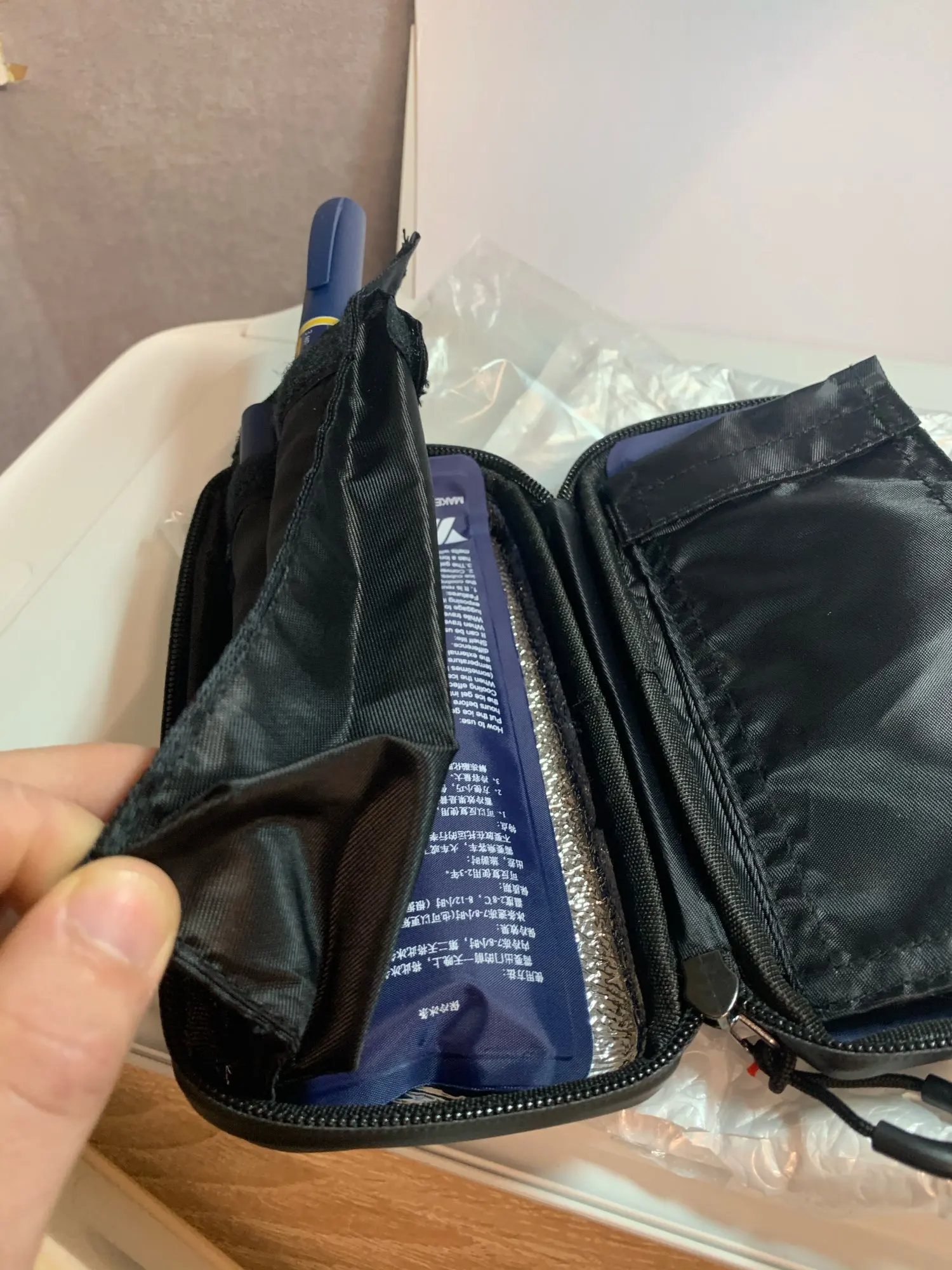 Сумка была доставлена в течение 20 дней, довольно быстрая доставка, особенно в условиях пандемии. Сумка, как описано. Качество сборки очень хорошее и на первом месте выглядит так, как будто он прослужит довольно долго. Мне нравится внешний цвет, материал гладкий на ощупь. Внутренние отсеки достаточно высокие, чтобы соответствовать различным типам инсулиновых ручек.