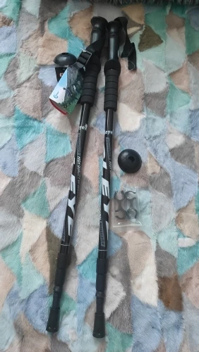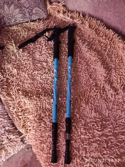 Палки получила через 3 недели, привез курьер домой. упакованы отлично. Выбирала по принципу не самые дешёвые, но и не сильно дорогие. Палки закручиваются в 2-х местах, при ходьбе не собираются. Палки были в "сапожках", сняла их там штырь, накрутила чашечки, которые тоже в комплекте. Палки легкие, красивые! Ручки удобные. вообще всем довольна!!!!!! РЕКОМЕНДУЮ.