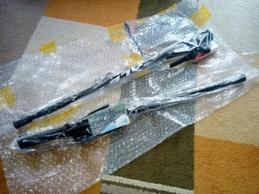 Товар пришёл в целости и довольно быстро. До Сахалина добрался за 20 дней. Палки снабжены колпачками, чтобы ходить по асфальту и «юбочками» для острых концов – видимо для более бездорожного рельефа. На рукоятках есть простые ремешки. Как поведут себя палки в деле – только предстоит проверить.
