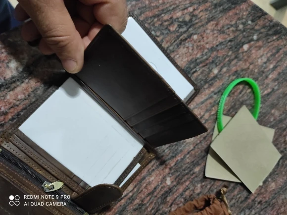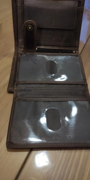 Кожа не является подлинной и легкой, в отличие от того, что присутствует на рисунке, как твердая и оригинальная, а также слоты для карт, которые открываются в последний раз, когда вы вставляете ATM карту с отверстием, текст карты виден и покрывает другие карты из-за плохого дизайна