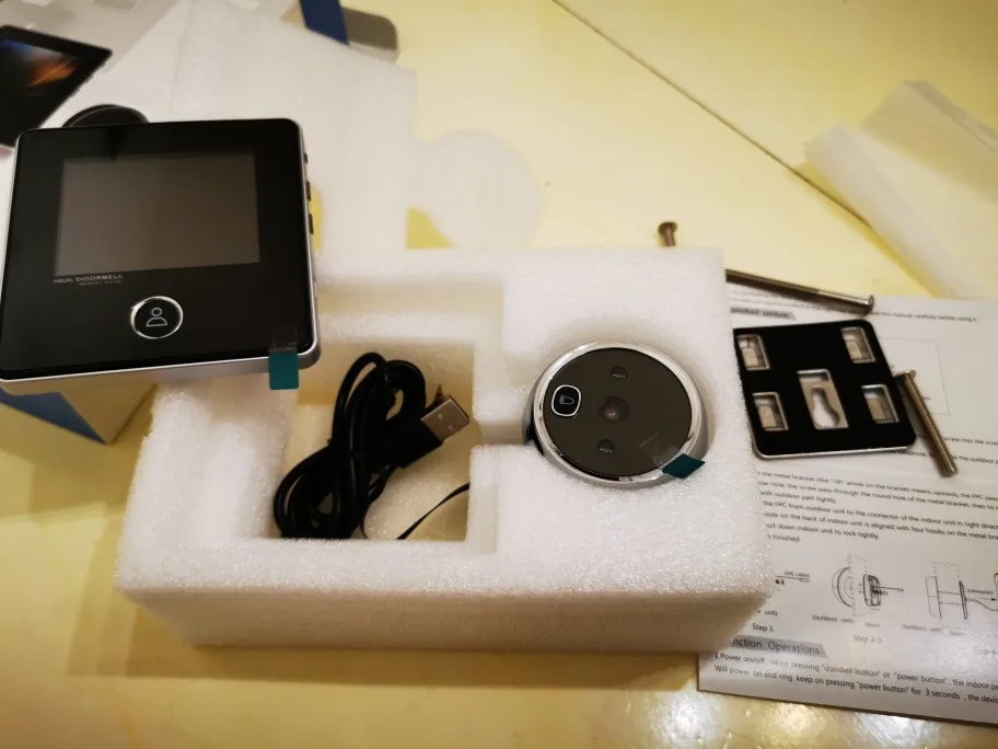 Хорошо работает. Элегантный глазок для камеры. Очень простая установка. Экран Довольно маленький по сравнению с другими устройствами, которые у меня есть, но это действительно нормально. Дверной звонок имеет сильный голос. Быстрая доставка.