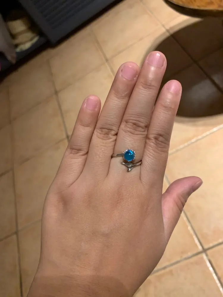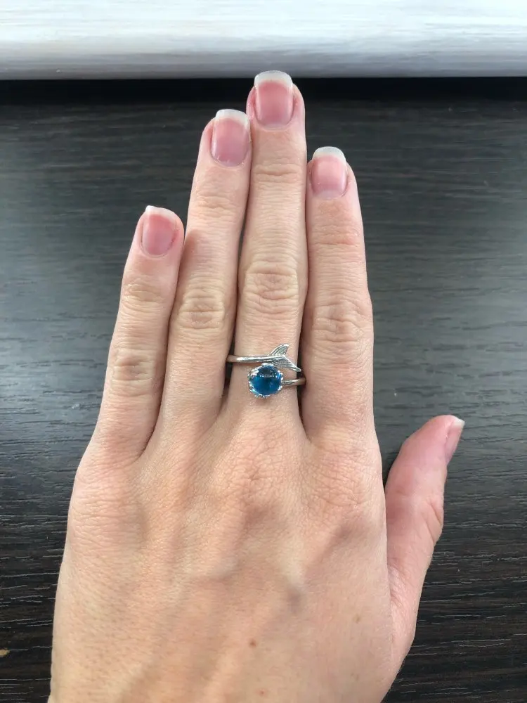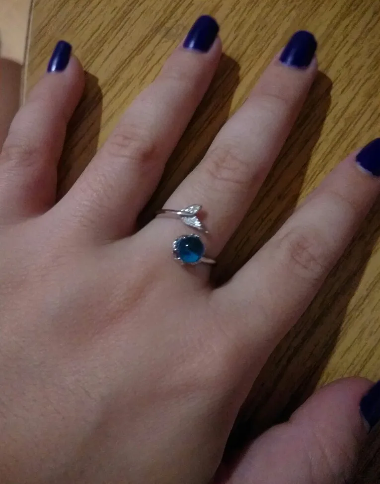 Невероятное кольцо, будто весь океан в нем. Отправили на следующий день. Пришло за 11 дней,вместе с подвеской,которую заказывала. чуть велико,но размер регулируется. Очень советую и продавца и товар
