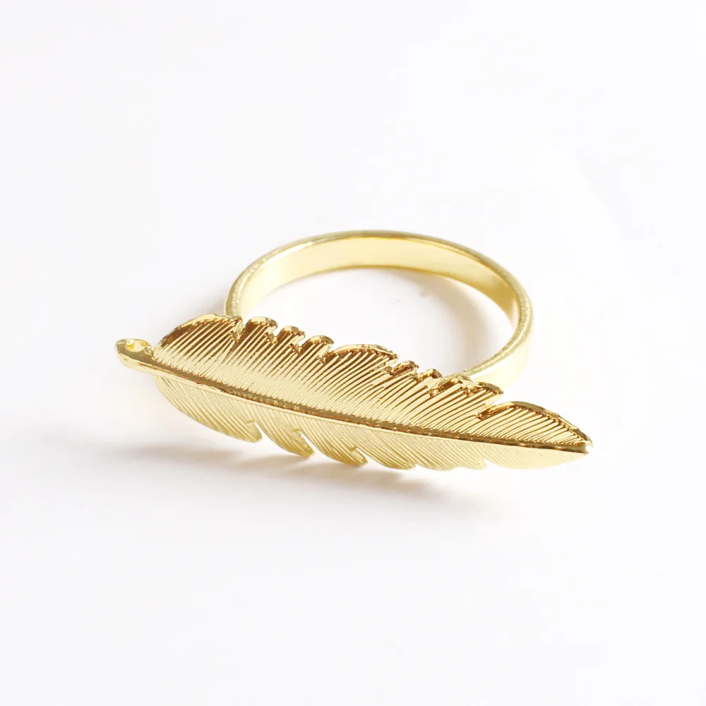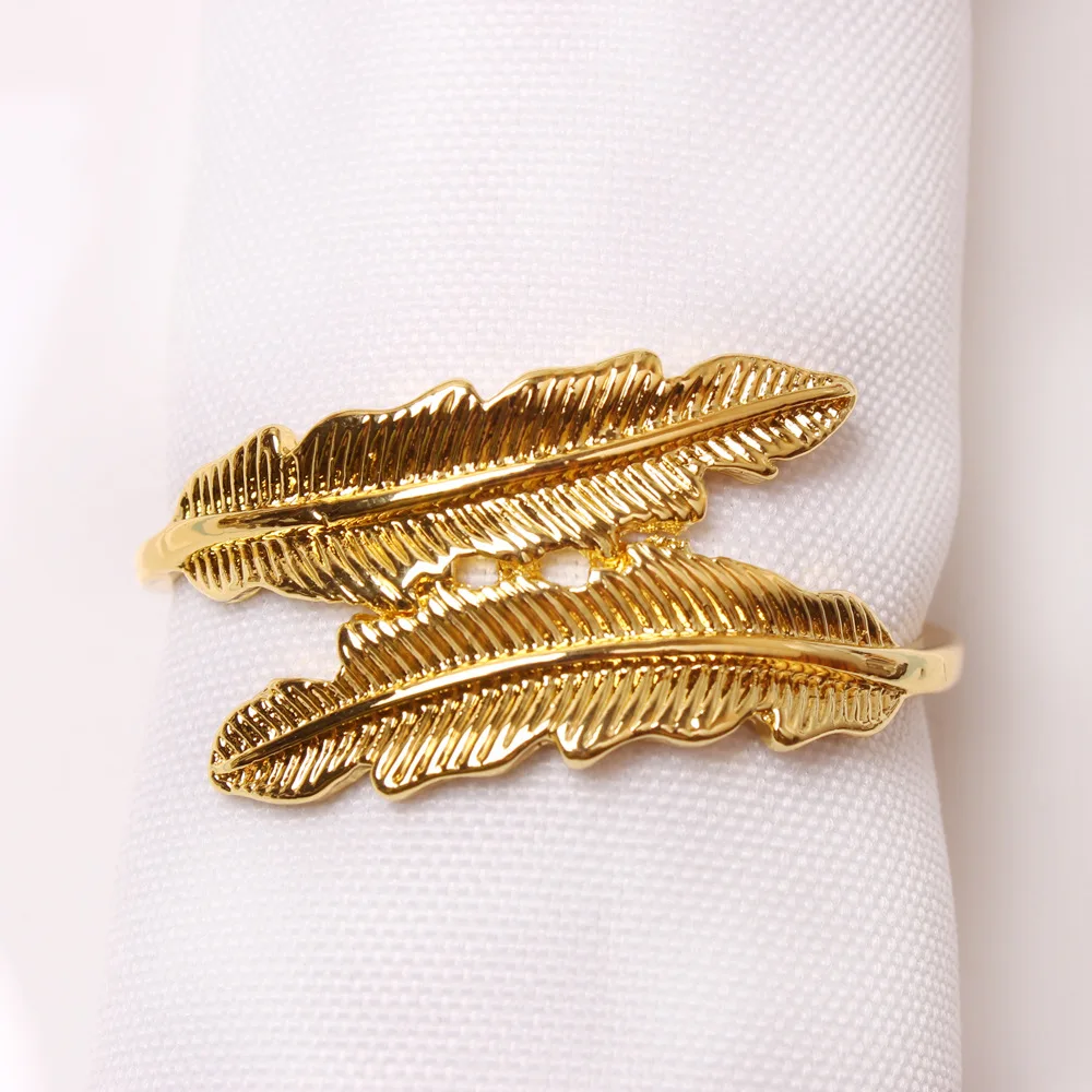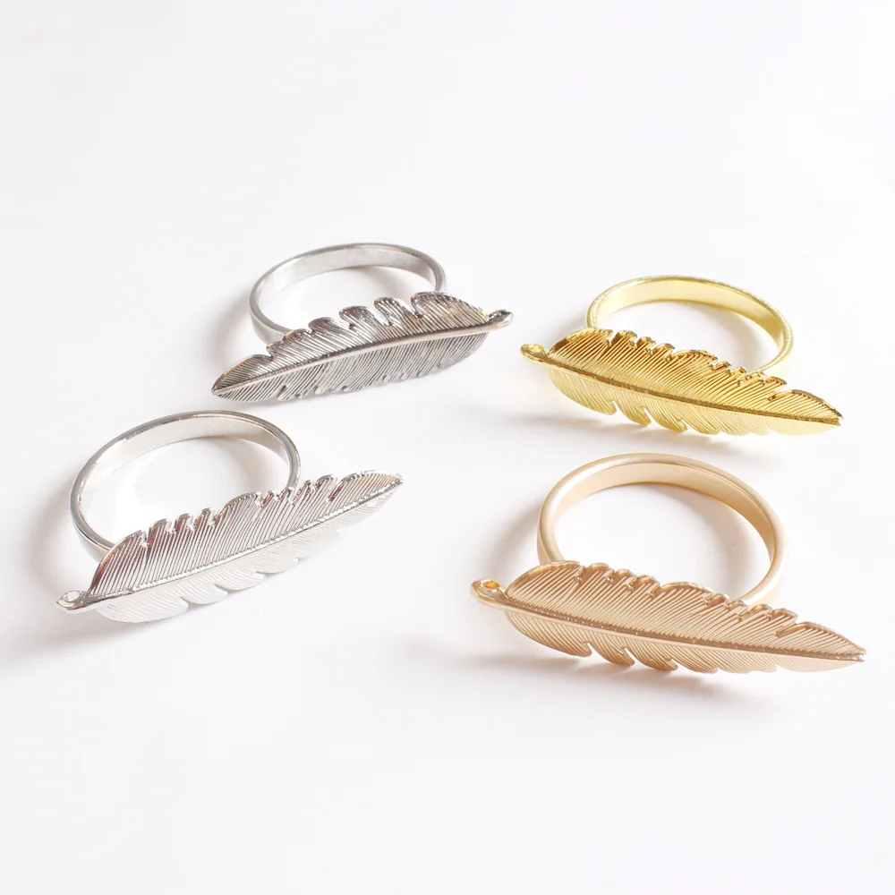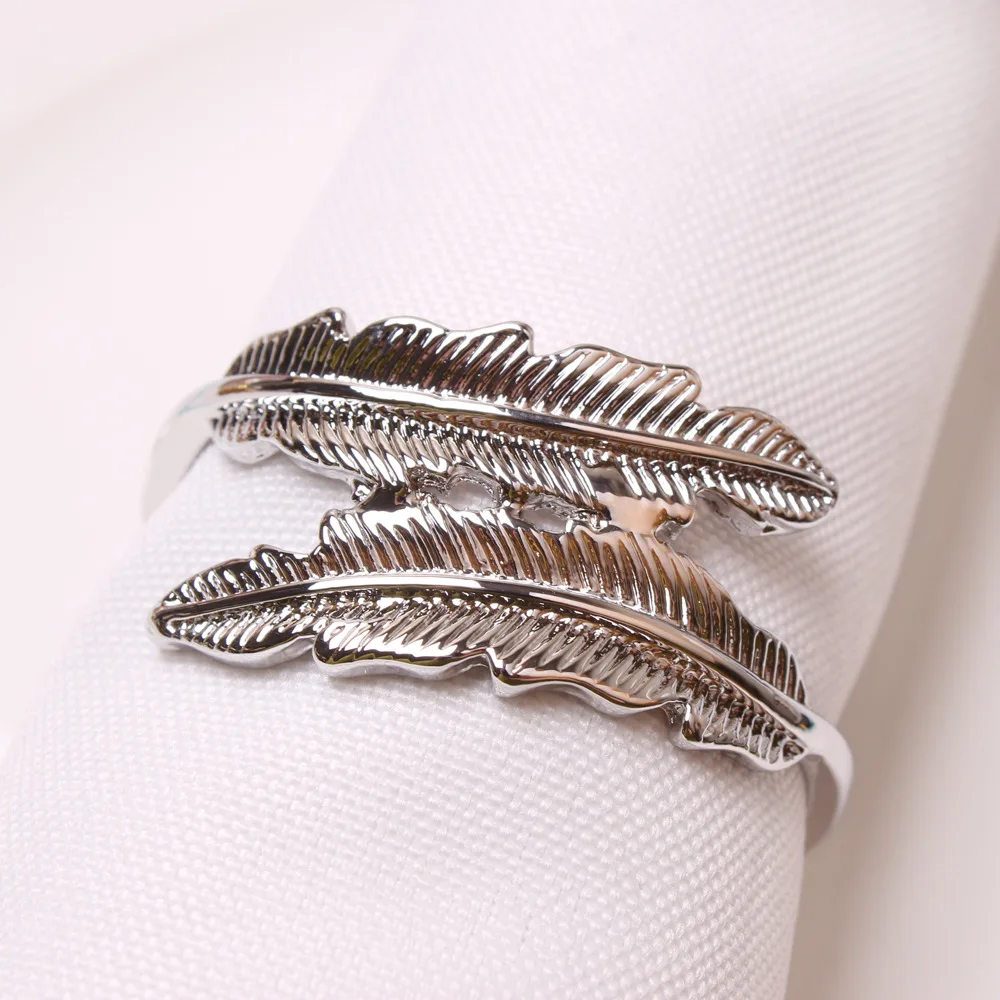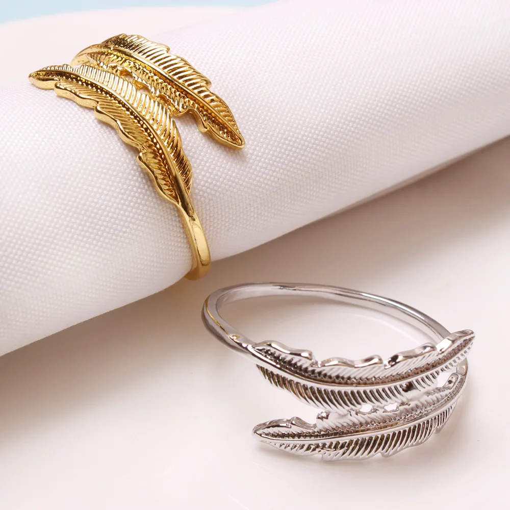 Новинка, креативная Пряжка для салфеток из сплава и серебряных перьев, кольцо для салфеток в Западном ресторане, украшение для полотенца, стола в отеле, 10 шт.