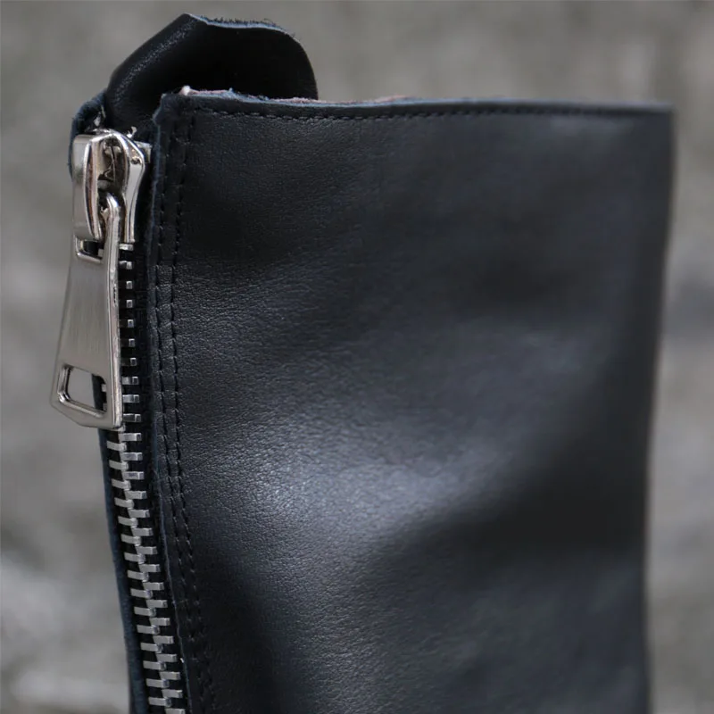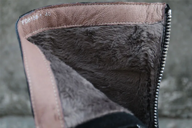 Женские ботинки из натуральной кожи с плюшевой подкладкой, зимние женские ботинки, черные длинные женские ботинки, женская обувь (8158-1)