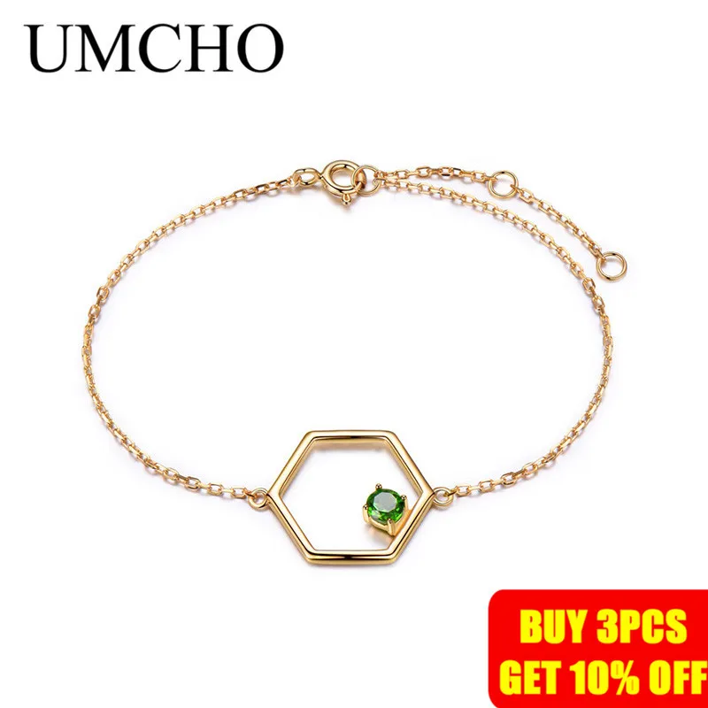 UMCHO естественный диопсид драгоценный камень браслеты для женщин Твердые 925 стерлингового серебра Цепочка с драгоценными камнями браслет ювелирные украшения свадебный подарок