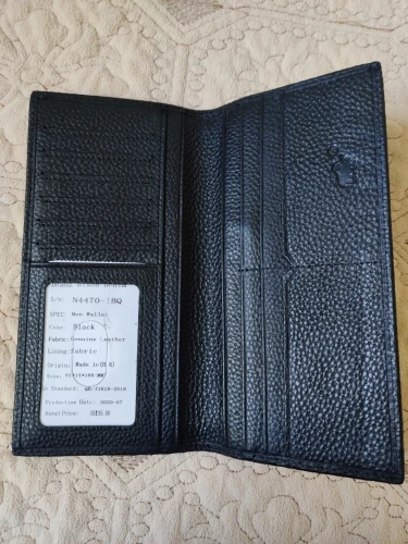 Кошелек мягкий и пахнет натуральной кожей. Пришло все в одном пакете с другой посылкой, бестрее чем ожидалось. Продавцу спасибо!