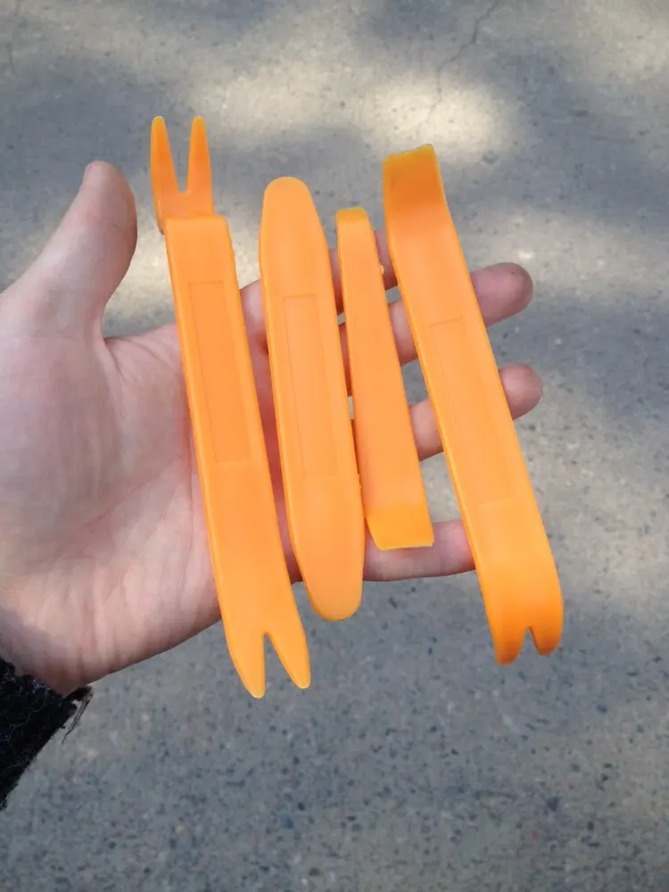 Набор из пластиковых монтажек для снятия обшивки внутри авто я искал давно, но оный нигде не попадался - заказал здесь. В деле пока не пробовал, но мне кажется, что им бы ещё не помешало жёсткости чутка. В наборе есть металлическая монтажка под грибовидные клипсы - это несомненный плюс, ибо демонтируются оные с заметным усилием. Магазин и продавца рекомендую, оперативнось обработки и отправки заказа на высоте - никогда ещё не приходили посылки из Китая в Ростовскую область за 2 недели...молодцы!!