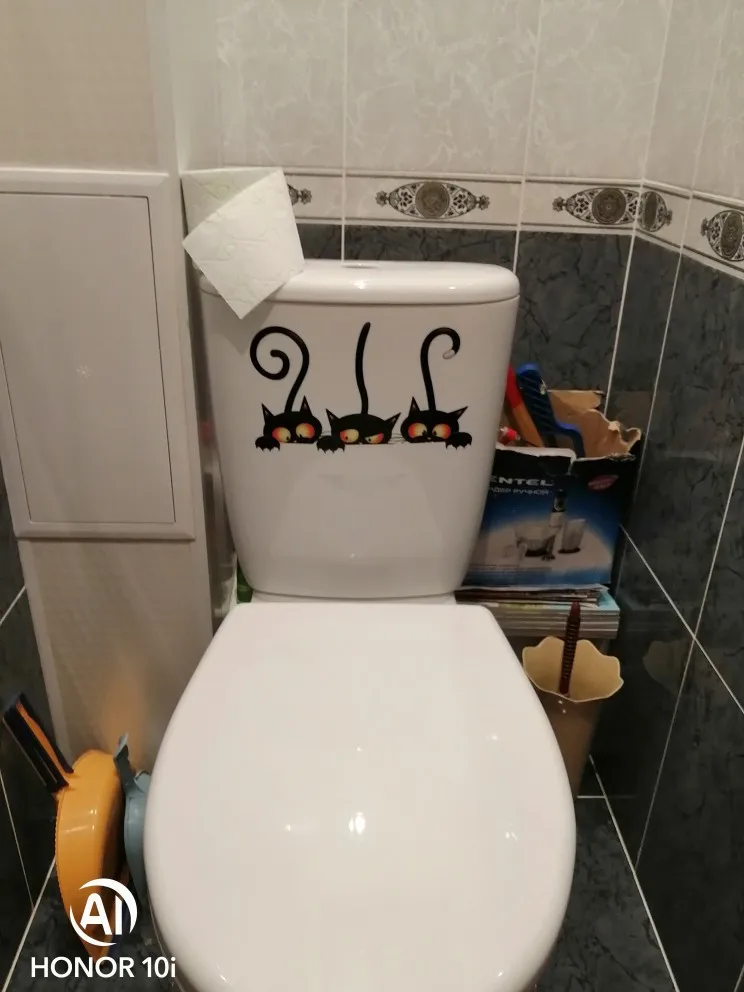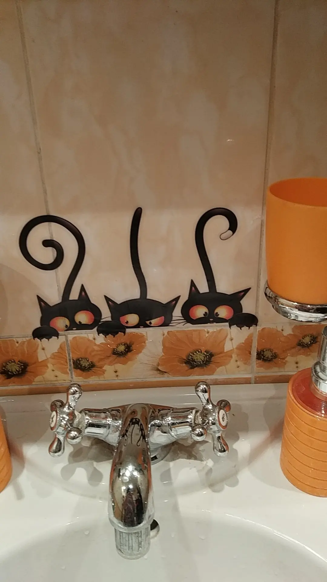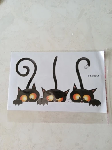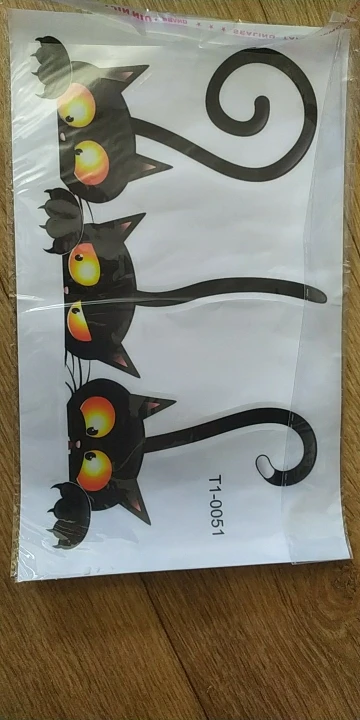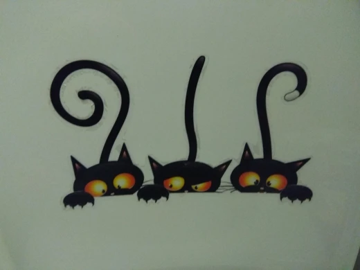 Очень красивые коты. Пока не придумал куда их наклеить. Покупал вместе с такими же, но черно-белыми. Те чуток больше размером, потому наклеил их. Очень нравится результат. Клейкая сторона приклеивается моментально и очень сильно держится, потому уверен в том, что это на года