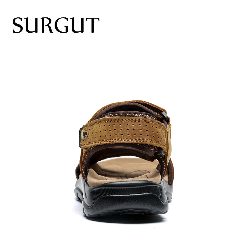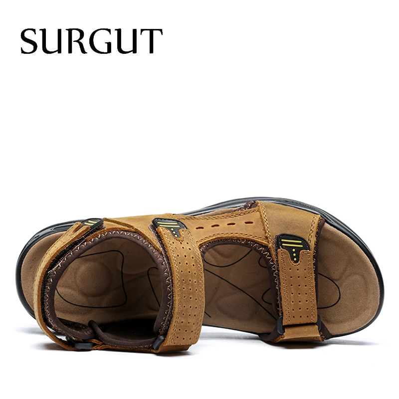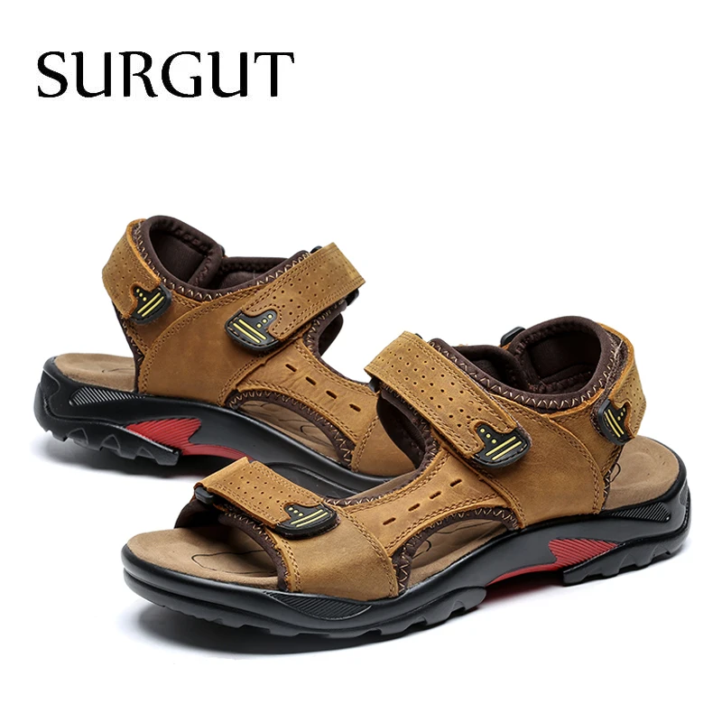 Мужские пляжные сандалии в римском стиле SURGUT, светло-коричневые босоножки из натуральной кожи, повседневная обувь больших размеров 38-48 для лета, 2019