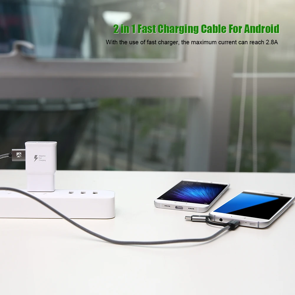 Phone Model 2Micro USB Cable for Samsung S6 S7 Edge Xiaomi Redmi Note 4x