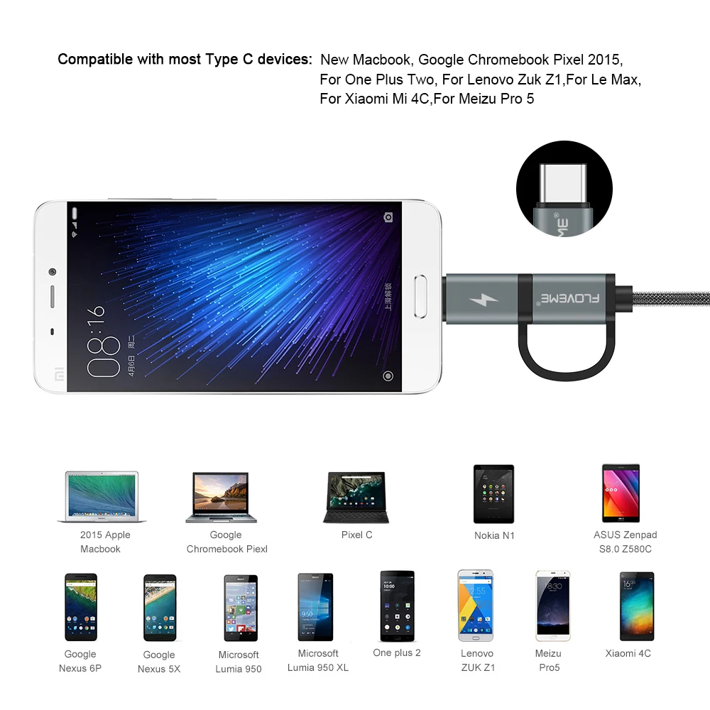 ItemFLOVEME QC 3.0 Micro USB & Type C Cable