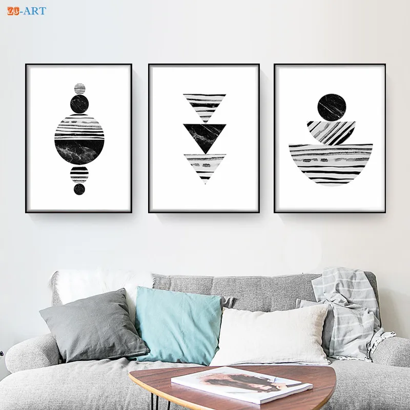 Черно-белый настенный постер в стиле ретро с мраморным геометрическим принтом, холщовая живопись, настенные картины для гостиной, декор среднего века