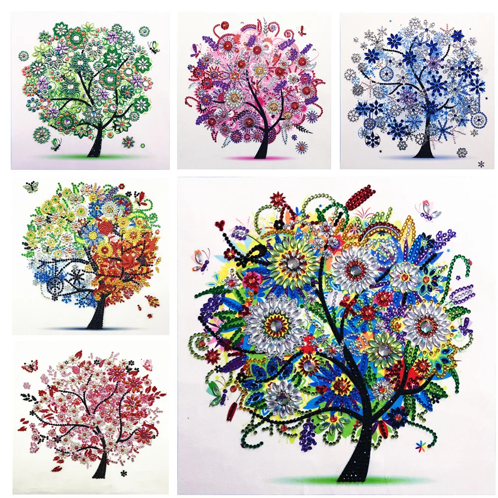 Алмазная 5d-картина сделай сам, четыре сезона, дерево, специальная блестящая Алмазная вышивка, мозаичная наклейка, вышивка крестом, украшение