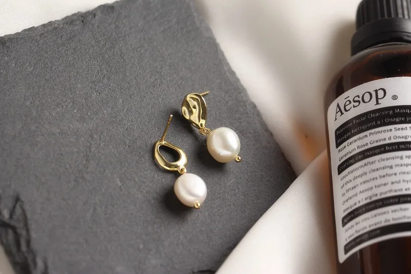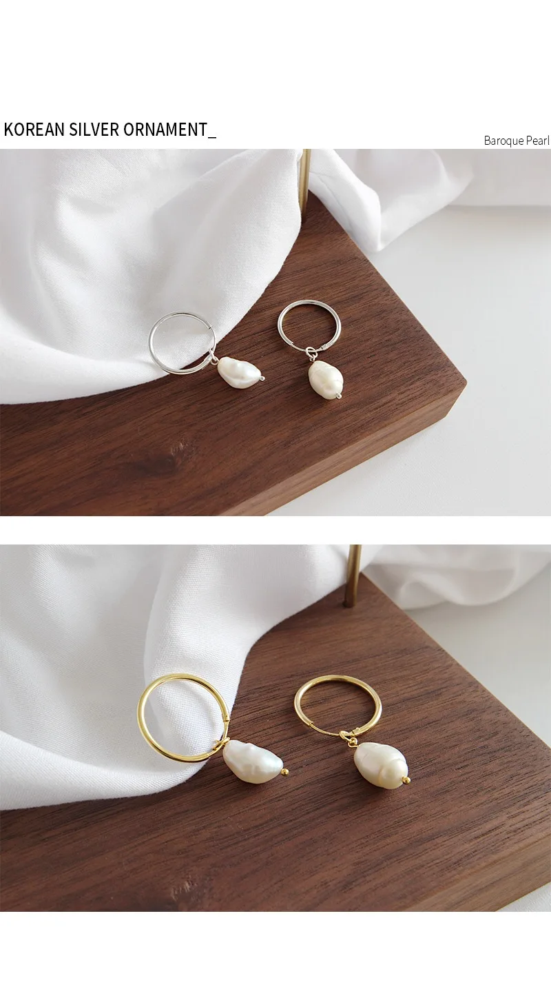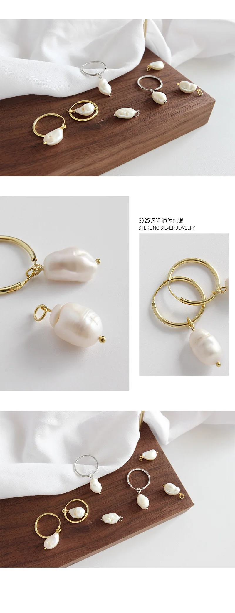 925 стерлингового серебра серьги Модные барокко Lrregular пресноводный жемчуг серьги простая красивая обувь; Большие размеры для женщин девушка серебряные серьги ювелирные изделия