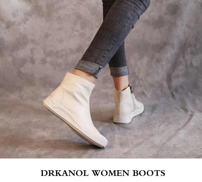 Ботинки женские DRKANOL, из натуральной кожи, на плоской подошве, с боковой молнией, H8066, для осени и зимы