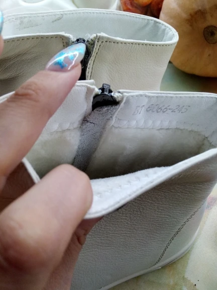 заказала 11.11 получила 30.12, сапожки выше всех ожиданий, удобные, теплые, лёгкие, не скользят, недочётов пока не обнаружила, упакованы хорошо..заломов нет, соответствует описанию, полностью довольна покупкой