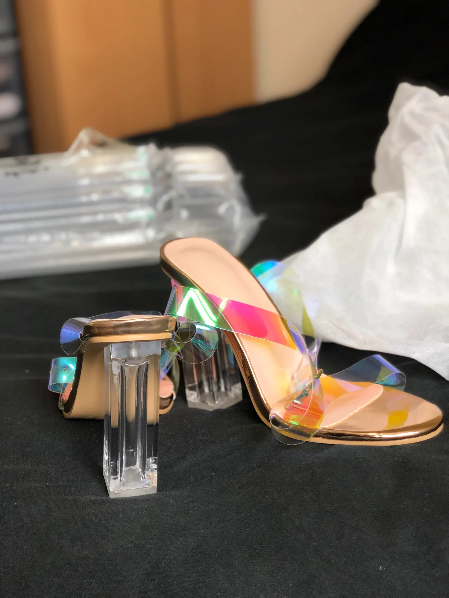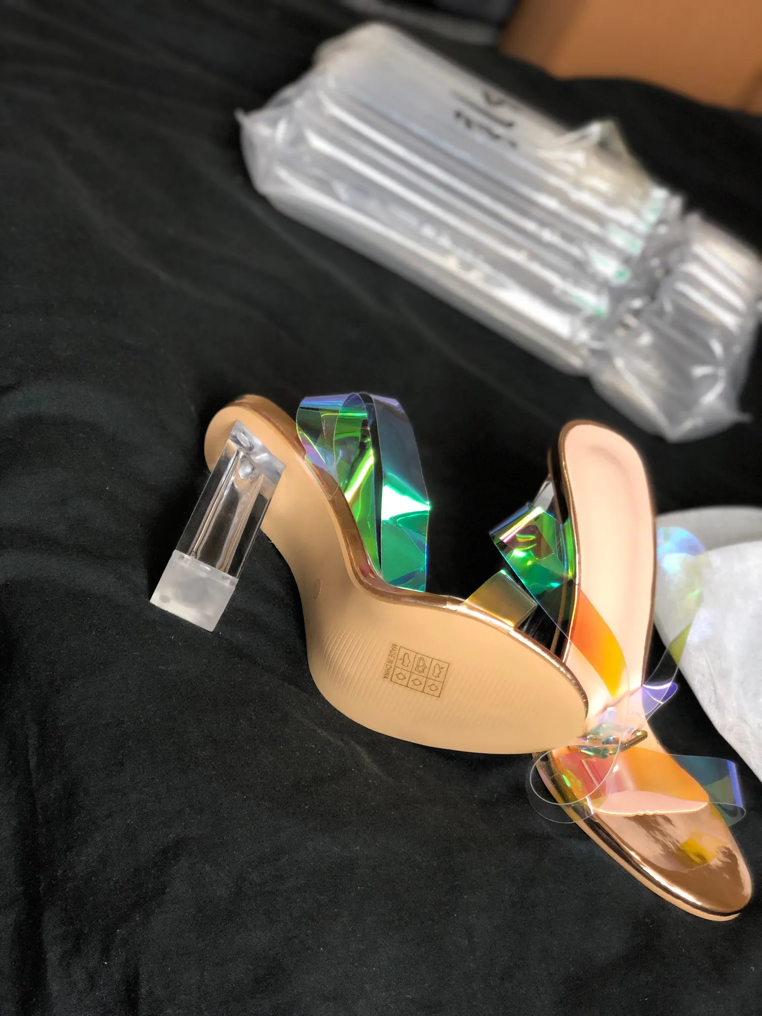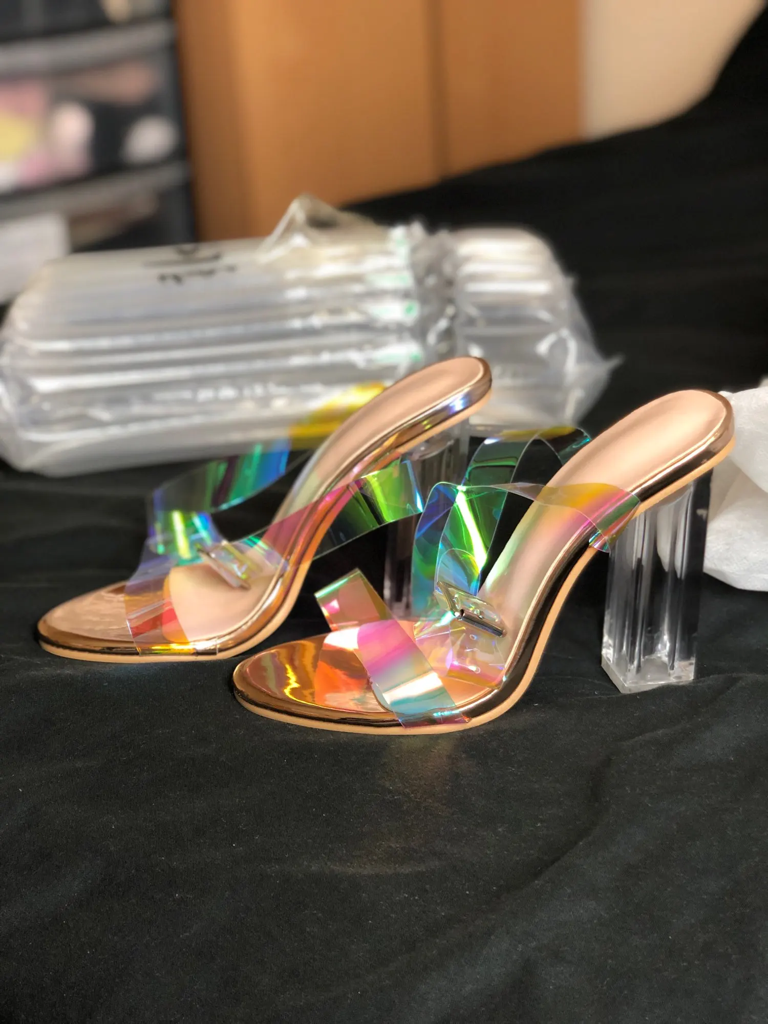 Женские босоножки из ПВХ, прозрачные, с ремешком и пряжкой, 2019