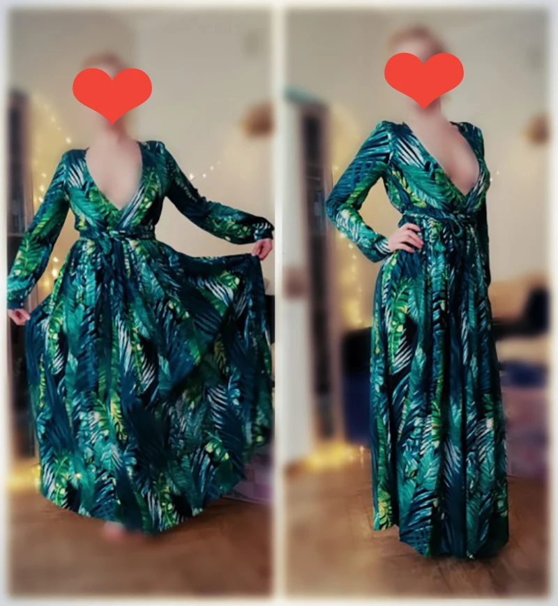 Платье очень красивое. Цвета в режиме реального времени более насыщенные и насыщенные. Вырез довольно большой. Под грудью идеально. Доставка в Польшу в течение 2 недель.