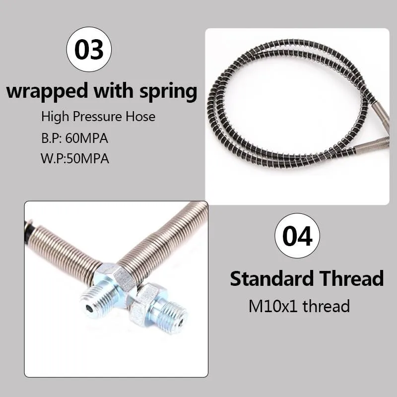Шланг высокого давления, 100 см, с пружинной намоткой, M10x1, наружная резьба, PCP Пневматика, насос для заправки воздуха, нейлоновый черный шланг