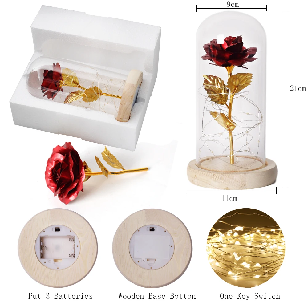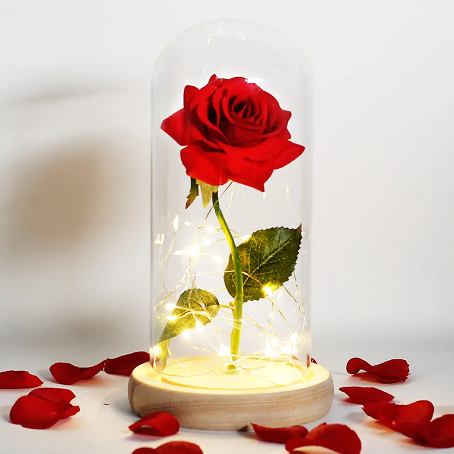 Прямая поставка, Красавица и чудовище, красная роза в стеклянном куполе, деревянная светодиодная Роза для украшения, рождественские подарки на день Святого Валентина