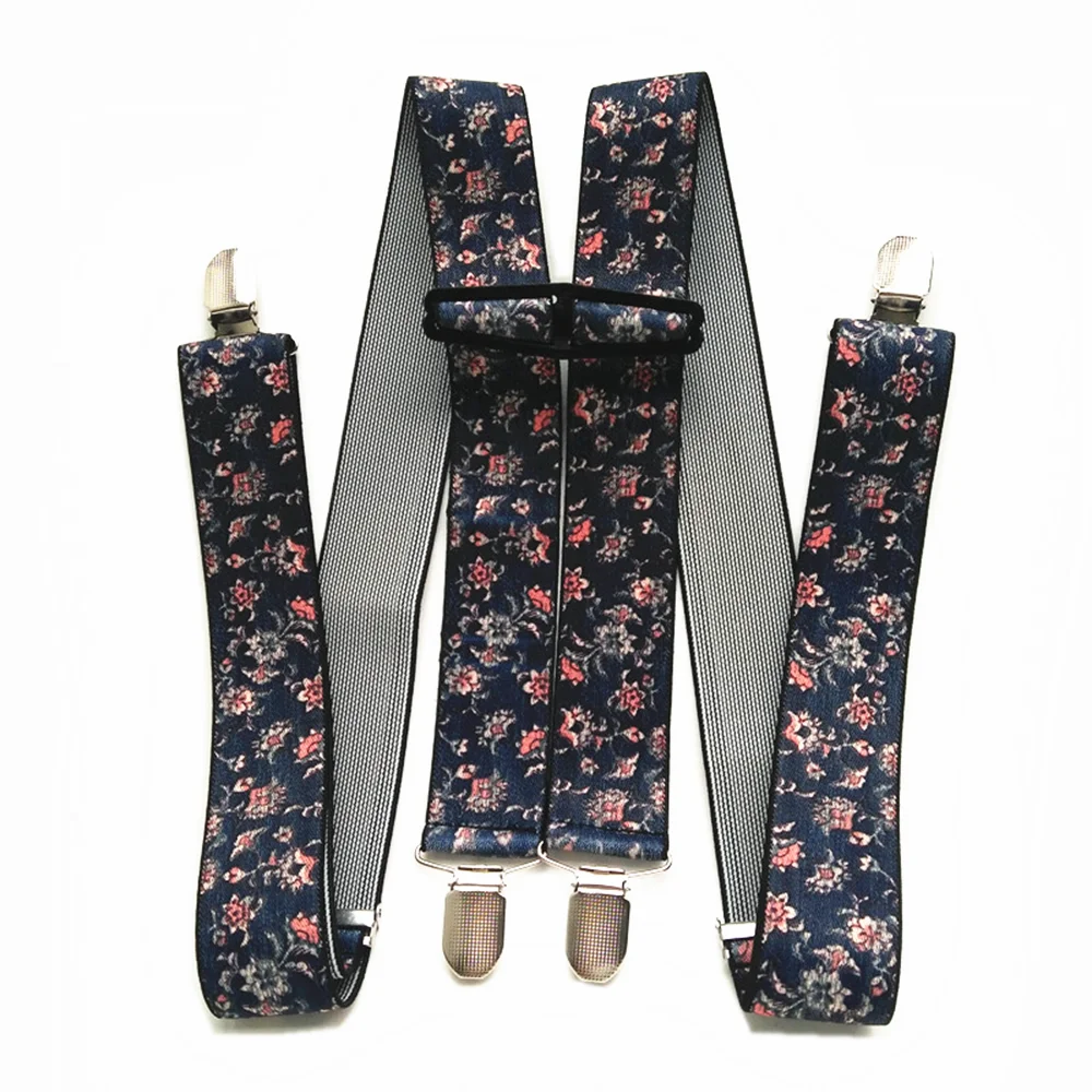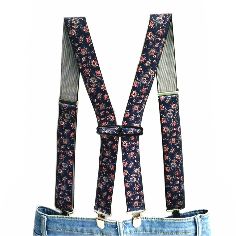 Регулируемые эластичные подтяжки для мужчин и женщин, широкие подтяжки для взрослых с цветочным принтом, 4 клипсы, новая модель, Ширина 3,5