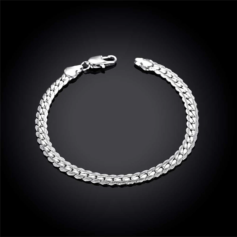 Браслет DOTEFFIL из серебра 925 пробы, с цепочкой длиной 6 мм, для женщин и мужчин, 20 см, модные ювелирные украшения для свадьбы, помолвки