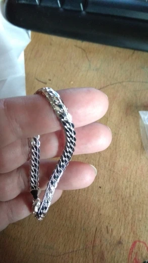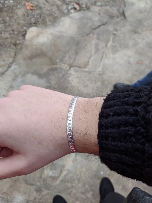 браслет более женский чем мужской, дошел быстро, меньше чем за месяц, недели 3 может, качество норм, но плетение очень жесткое и не сгибается как обычная цепь, на днях разогнулось колечко возле карабина и я чуть не потерял браслет, а разогнулось оно об кофту) стоит проба 925, но народ, серьезно вы ведетесь на это?)) она даже выгравирована очень плохо, да и какое серебро за 230 рублей ), вот ещё, на утро обнаружил такие синяки на руке, это произошло именно из-за его непластичности