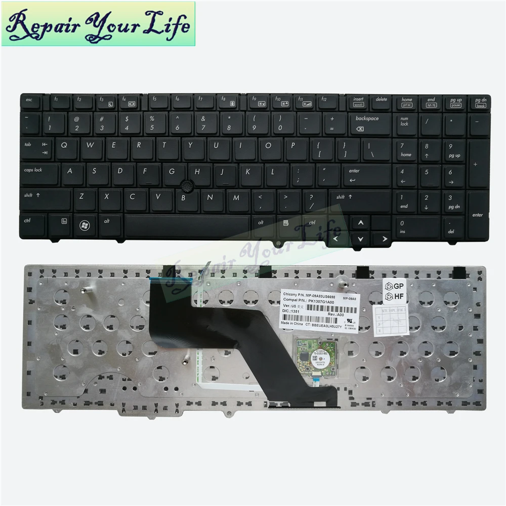 Клавиатура для ноутбука HP для EliteBook 8540p 8540w американский английский черный стандарт PK1307G1A00 MP-09A83 хорошее качество Модель: Для EliteBook 8540p 8540w П/П: PK1307G1A00 MP-09A83US6698