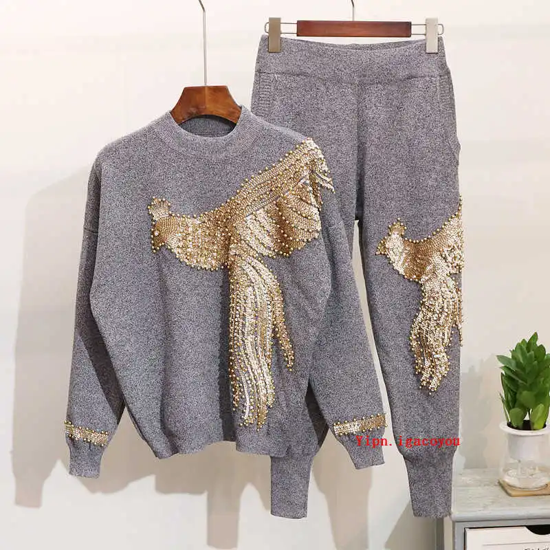 Женский вязаный спортивный костюм, свитер с длинным рукавом и блест...