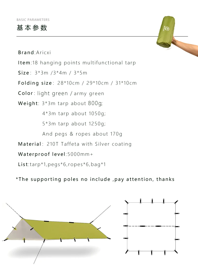 Тент туристический AricXi 210T, Ультралегкая водонепроницаемая палатка из тафты с серебряным покрытием