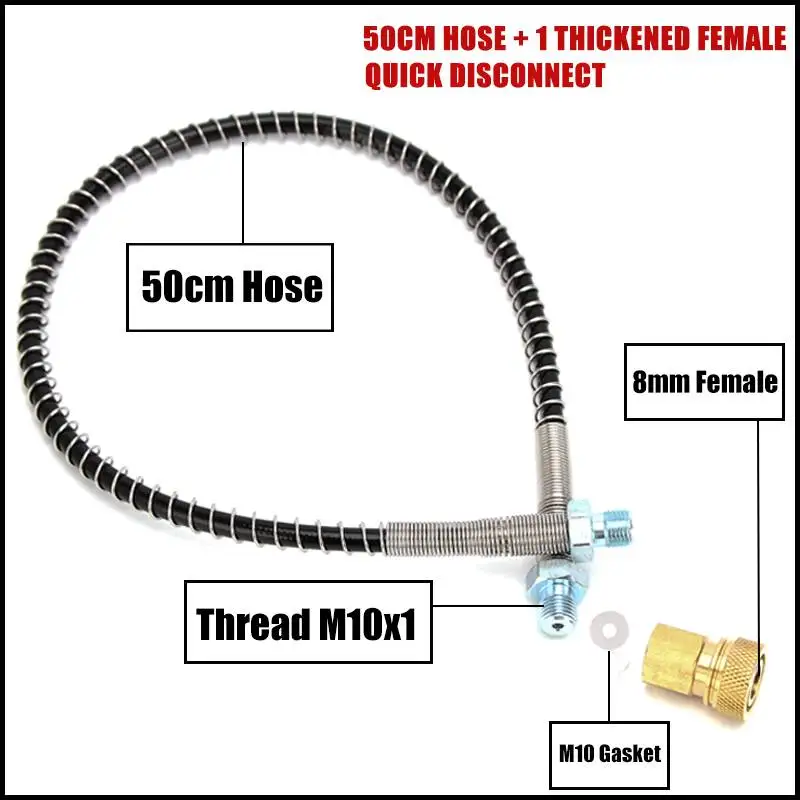 PCP воздушная Пневматика, насос для наполнения воздухом 50 см, длинный шланг высокого давления с пружинной оболочкой M10x1, нейлоновый черный шланг с наружной резьбой