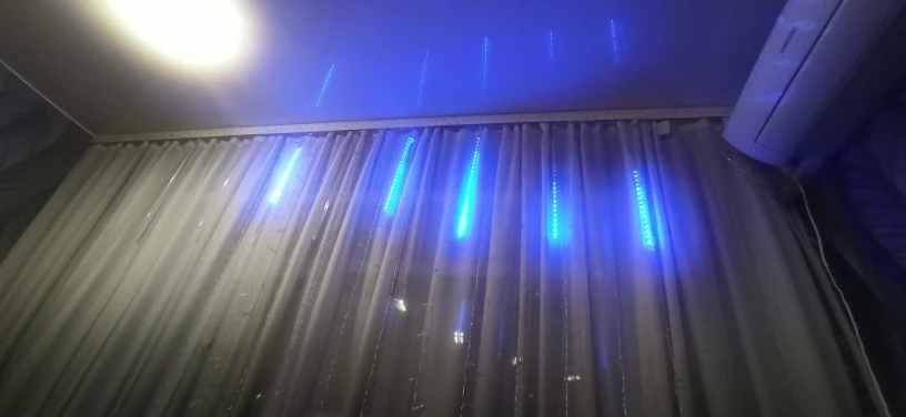Доставка в Одессу 11 дней, НП. В прошлом году брал тоже, работают до сих пор, год на улице провисели. Если будете вешать на улице, то надо отдельно крепить сосульки, сильные ветра переломали провод родной. Расстояние между крайними сосульками 2-2,1 метра. Можно соединять между собой, 4 штуки точно работают от одного блока. Не общался, заказывал 9 штук, продавец отправил 10, спасибо! Все рабочие. На фото 2 штуки на четырех метрах и сильный ветер))