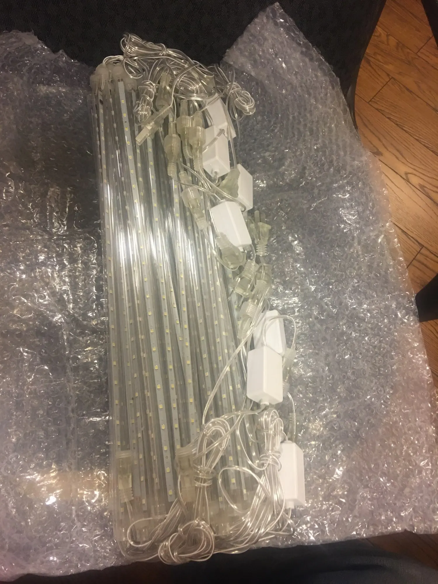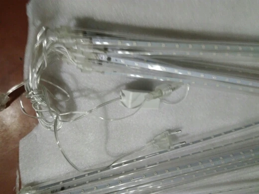 Заказала 11.11,получила 15.12.Заказ пришел в Ленинградскую обл.Трубки упакованы в паралон,в пути сами трубки немного помялись(трубки пластиковые),но светодиодные пластины внутри целые.Гирлянда соответствует описанию.Работает от сети,нет кнопки переключателя.Покупкой довольна.Был риск что в целости не дойдет.Спасибо.