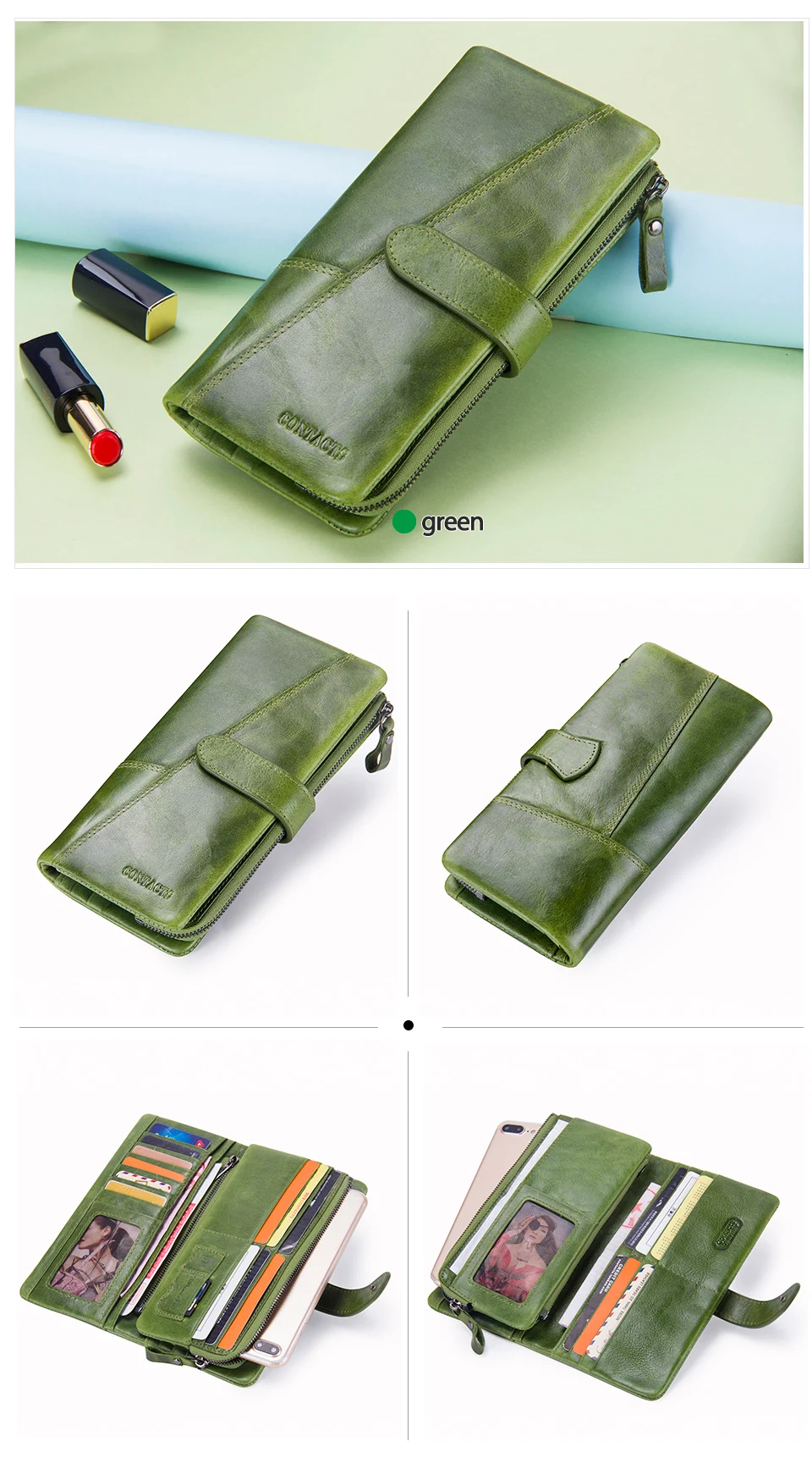 CONTACT'S Мужской кошелек из натуральной кожи с отделением для телефона мужские длинные кошельки кошелек на молнии 2019