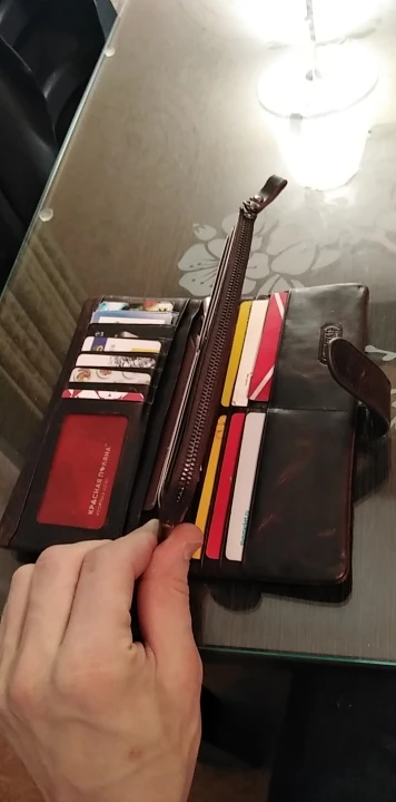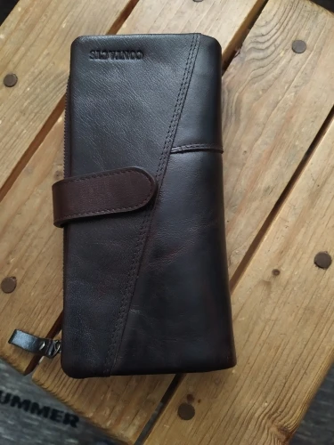 Отличный продукт, это кожа, превзошел мои ожидания, натуральная кожа, по качеству и цене я считаю это одним из лучших покупок Я сделал на Ali Express, все мои документы соответствуют моему мобильному телефону, который составляет 6,5 дюйма, и насколько хорошо застежка дает запас, чтобы положить все, что вам нужно, чтобы ходить, я очень доволен. Он поставляется в тканевой сумке, которая защищает его. Я настоятельно рекомендую тем, кто больше не хочет ходить по кошельку в задней сумке штанов, как я. Уже в руке вы видите очень мужской продукт и очень элегантность.