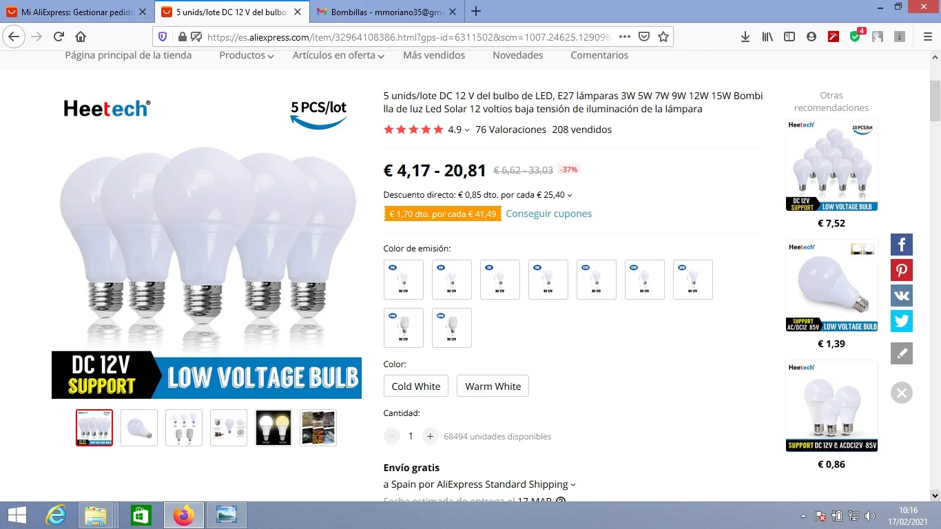 Страна: HU Emitting Color: 3W E27 DC12V Color: Cold White Доставка: Cainiao Super Economy 15.02.2021