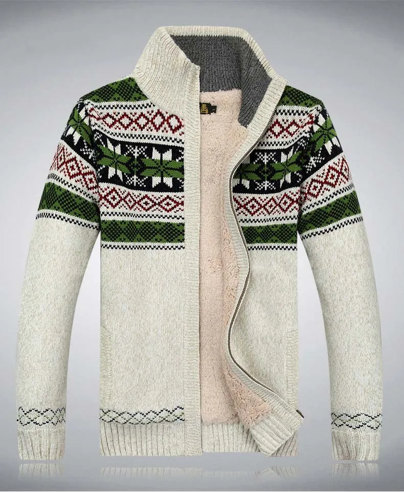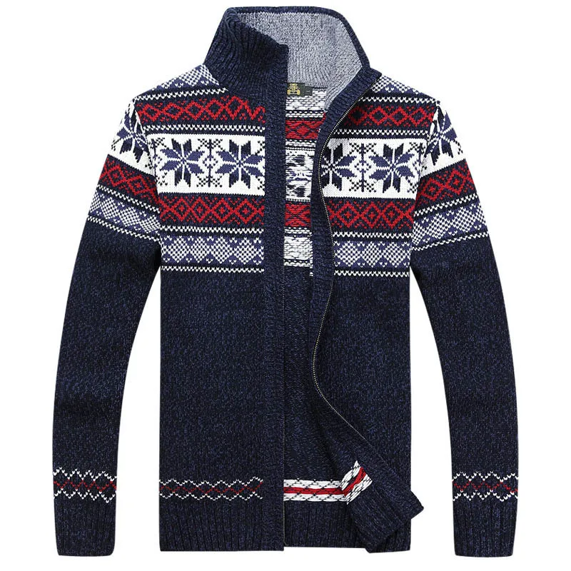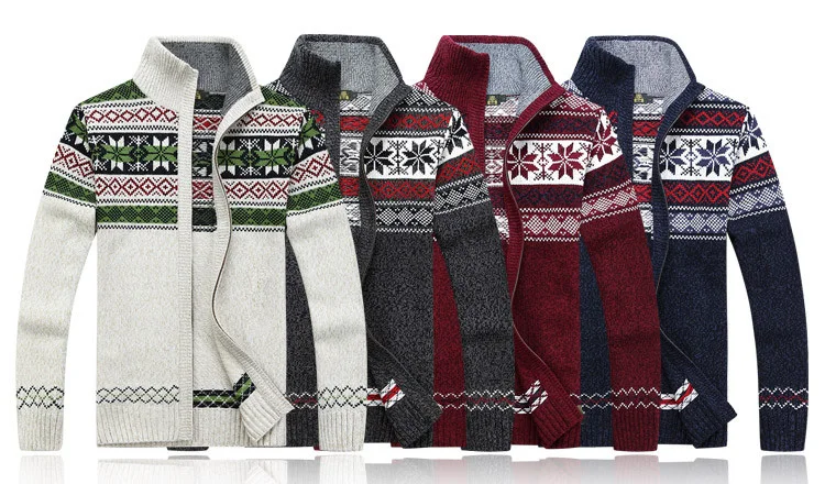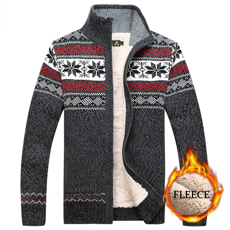 Мужской бархатный свитер, зимний шерстяной кардиган с узором, Повседневный, утепленный, на флисе, Рождественский свитер для мужчин